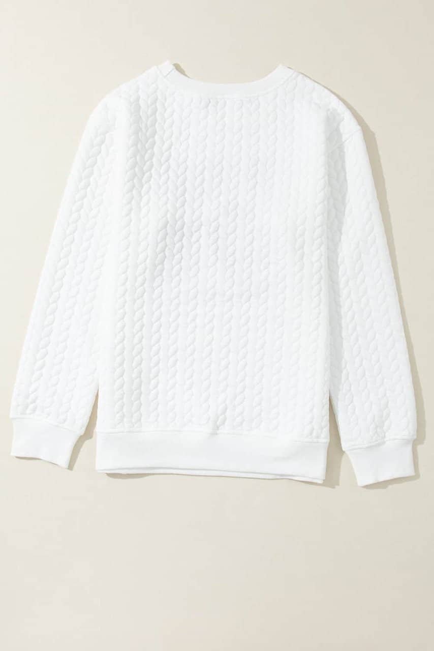 - The cable knit pattern adds a touch of elegance to this casual pullover
