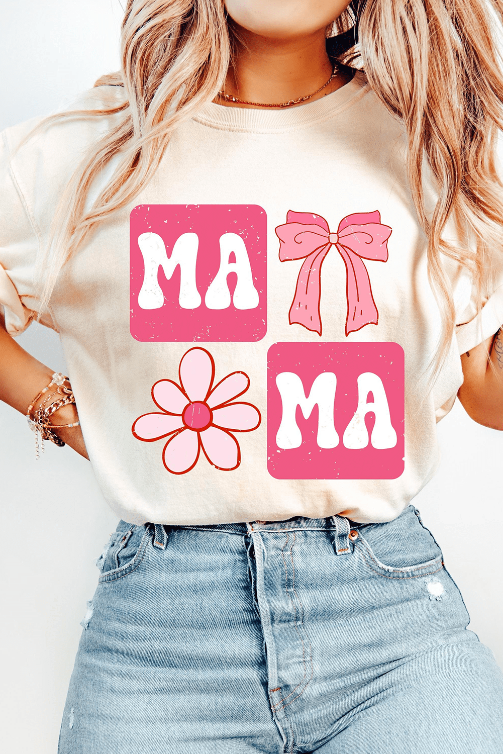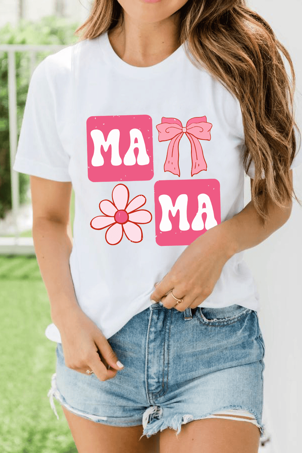Be the first to review “White Mama Bow Flower Print Crewneck T Shirt”
