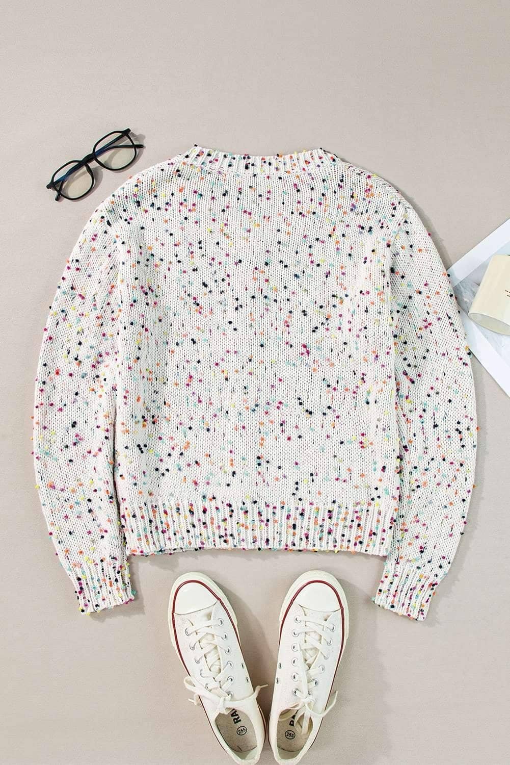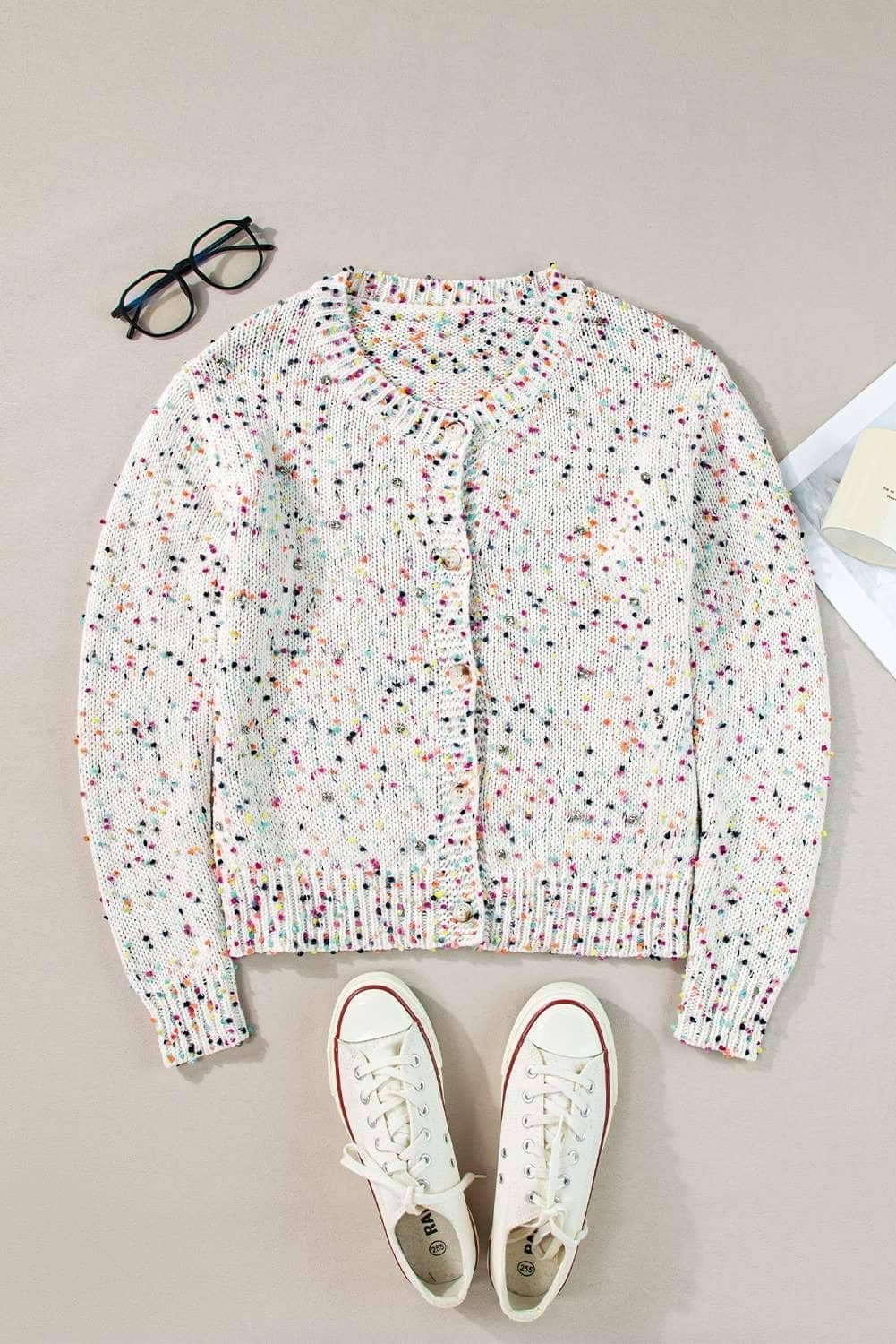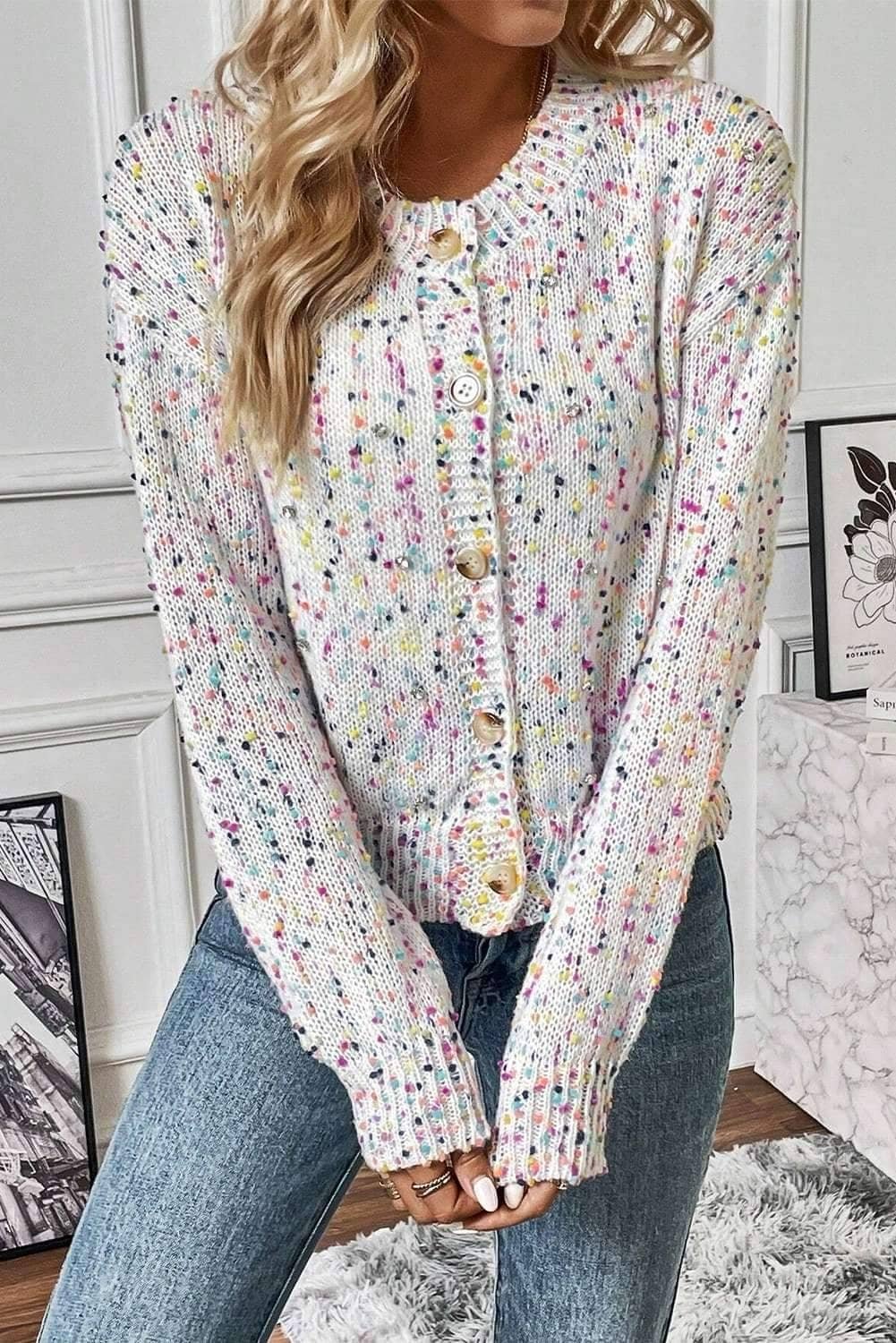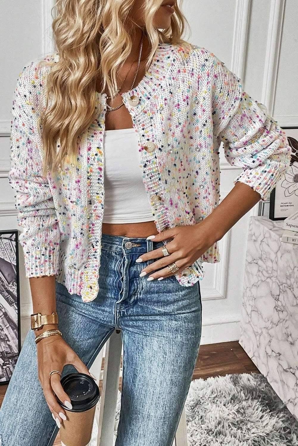 - This cardigan is sweet and stylish with multicolor confetti pattern