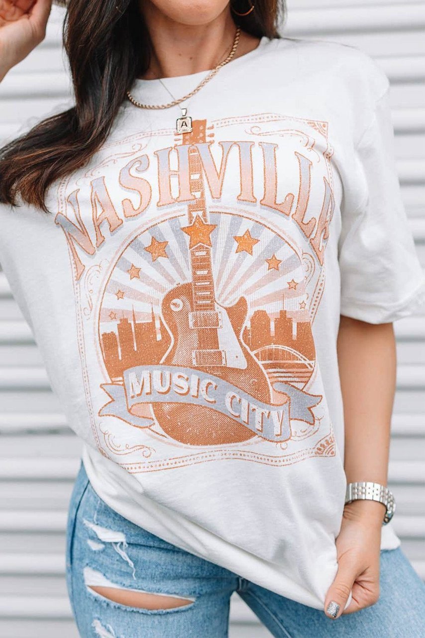 White Nashville Graphic Printed Short Sleeve T Shirt
