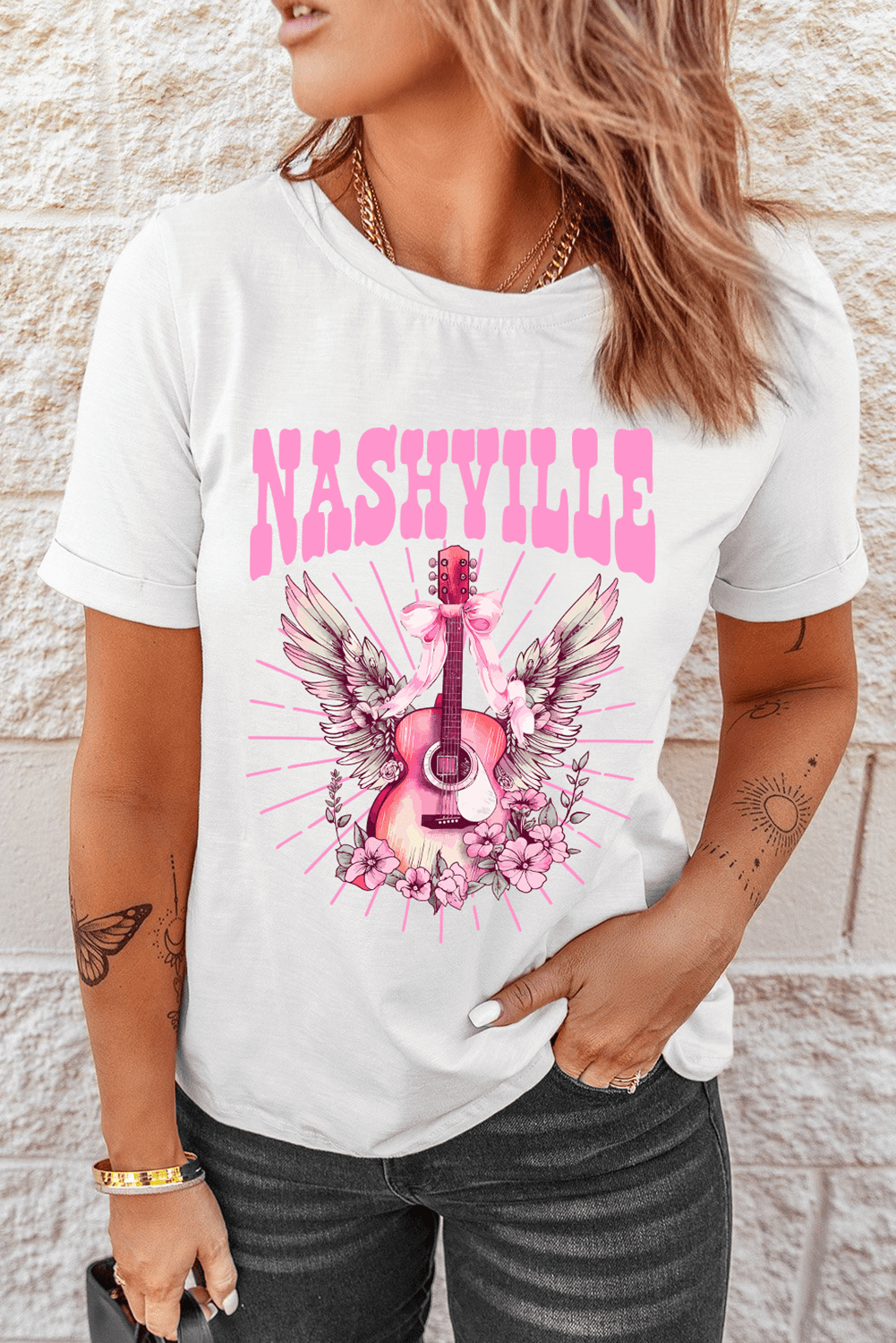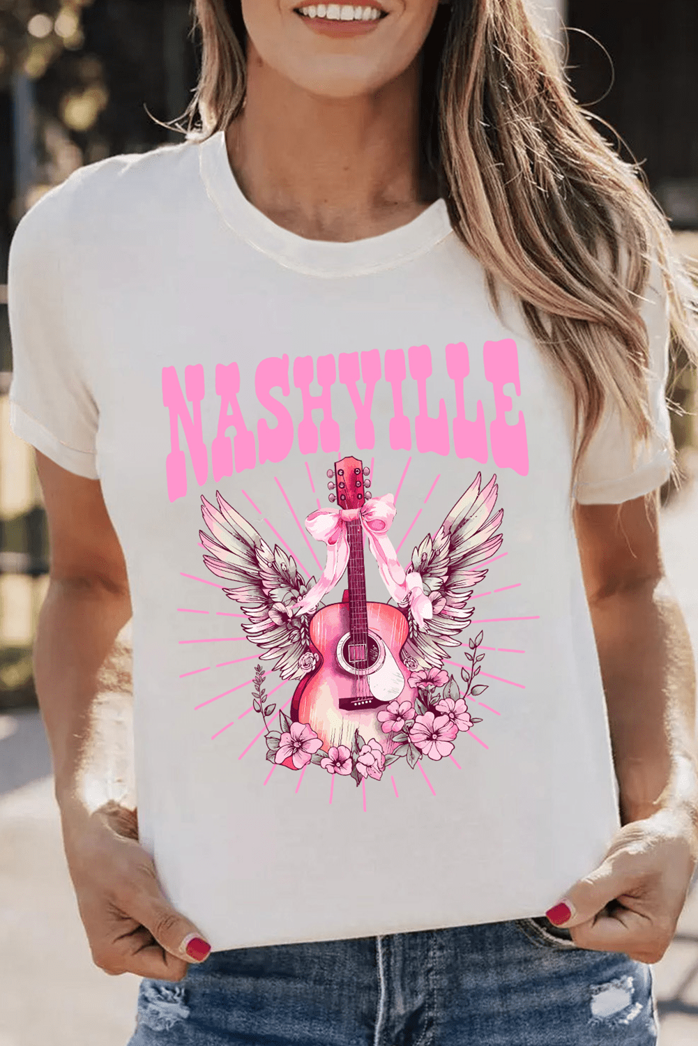 Celebrate Nashville’s music scene with its vibrant guitar graphic.