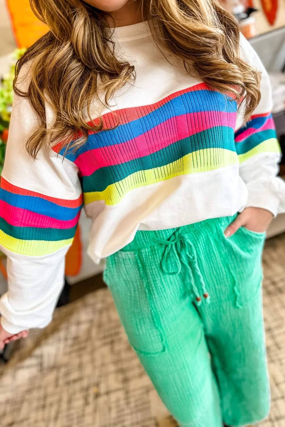 • This striped sweatshirt adds a fun and lively touch to your look.