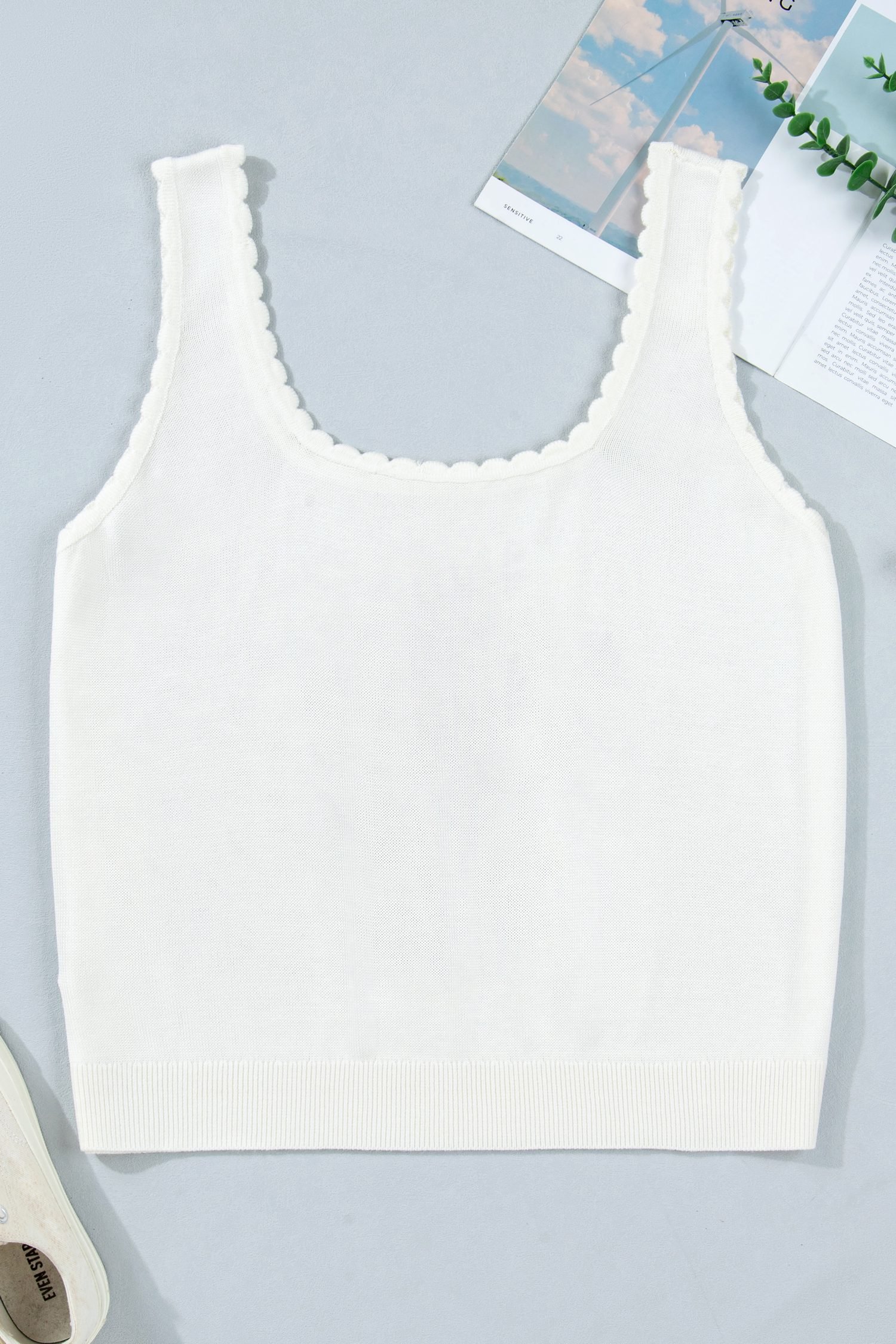The scalloped square neckline adds a touch of vintage flair.