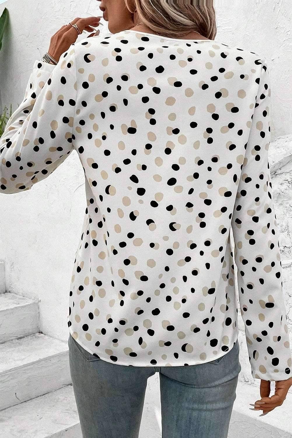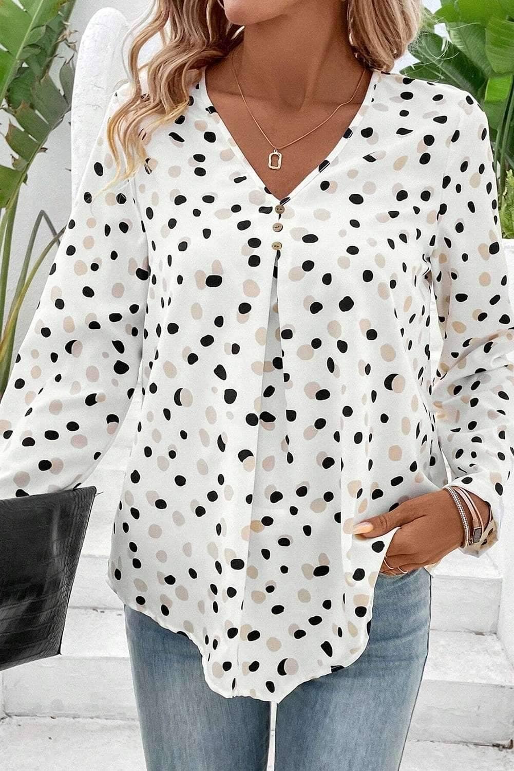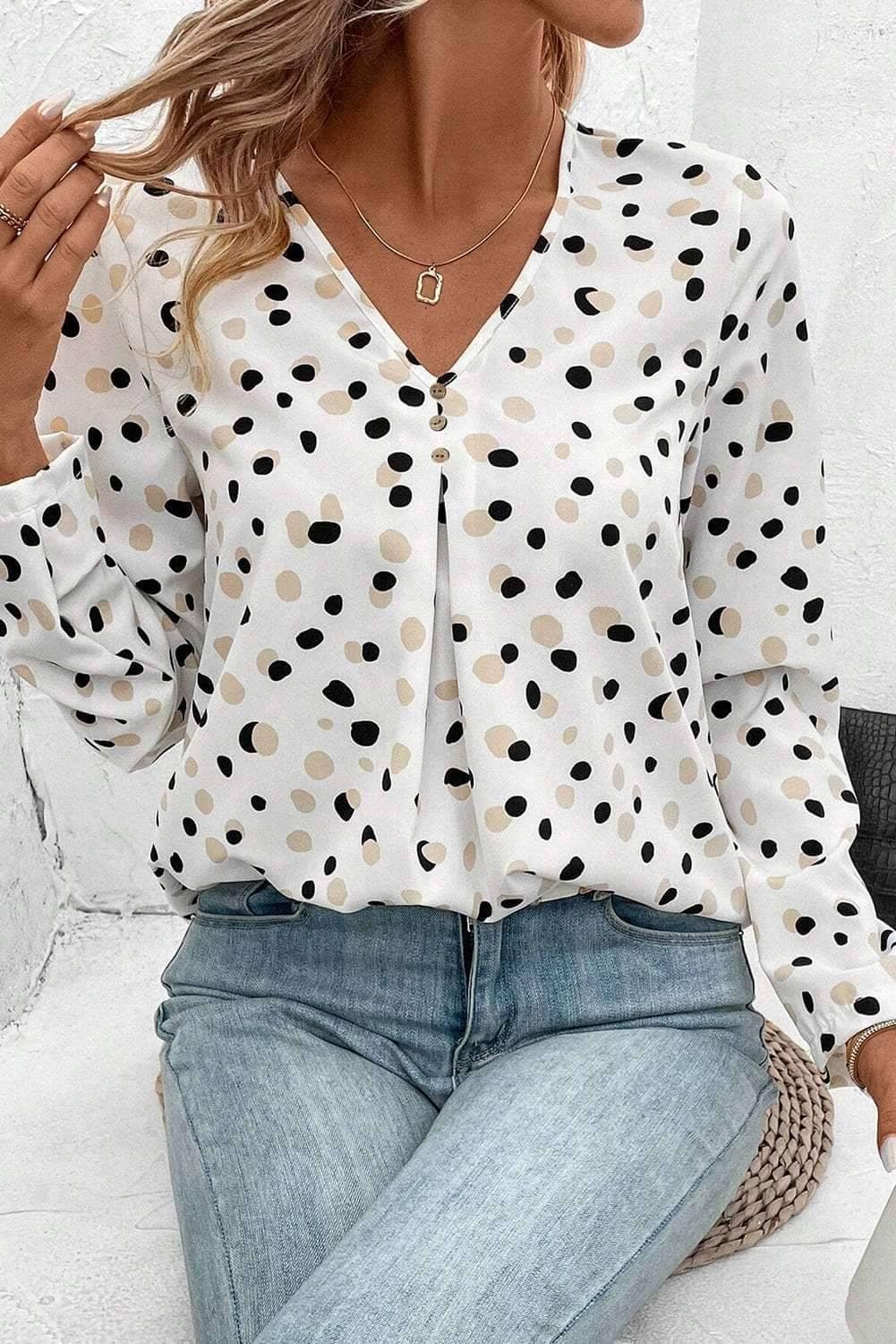 The blouse’s tailored fit create a flattering and feminine silhouette.