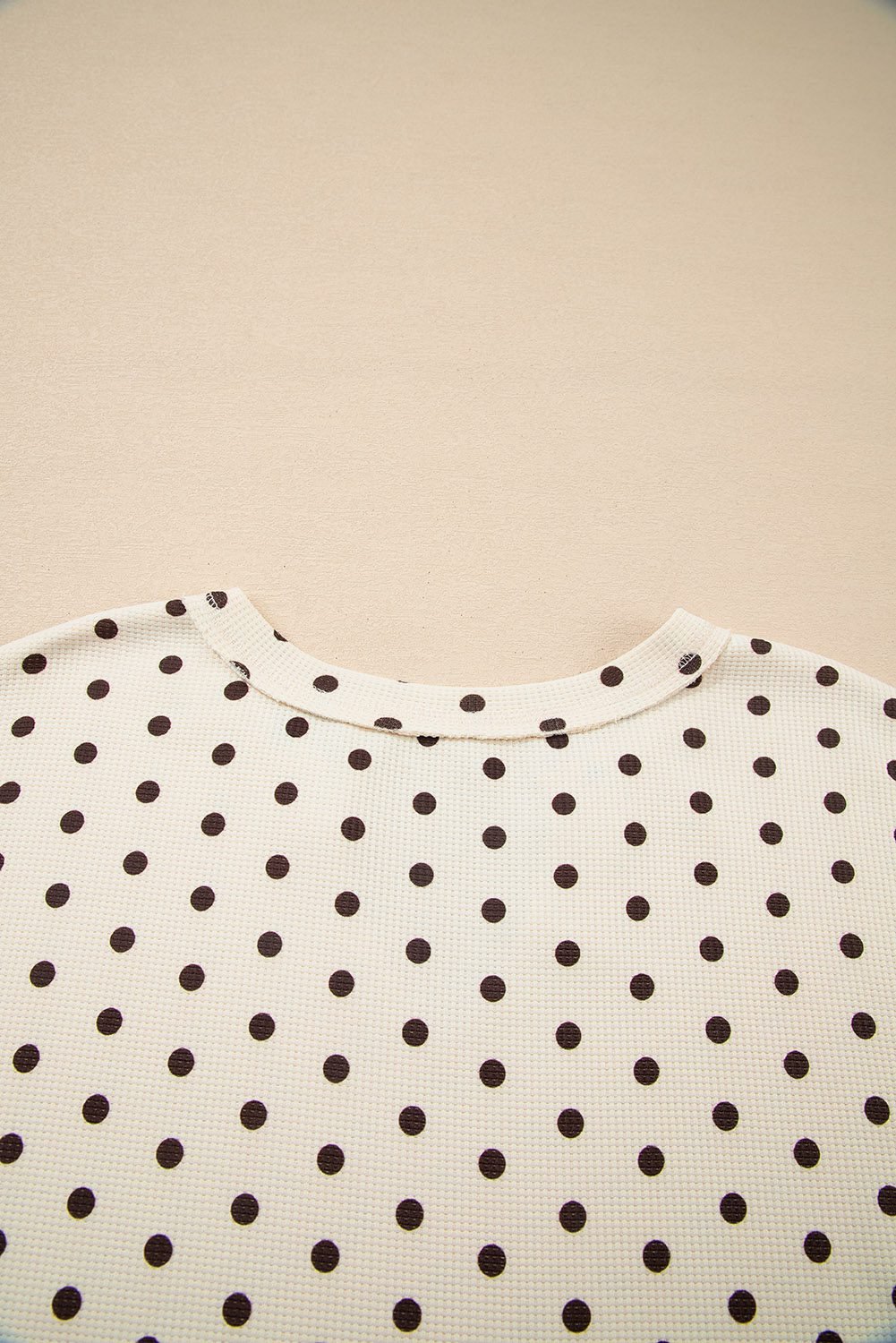 - Cute polka dot waffle knit lounge set brings comfort and charm.