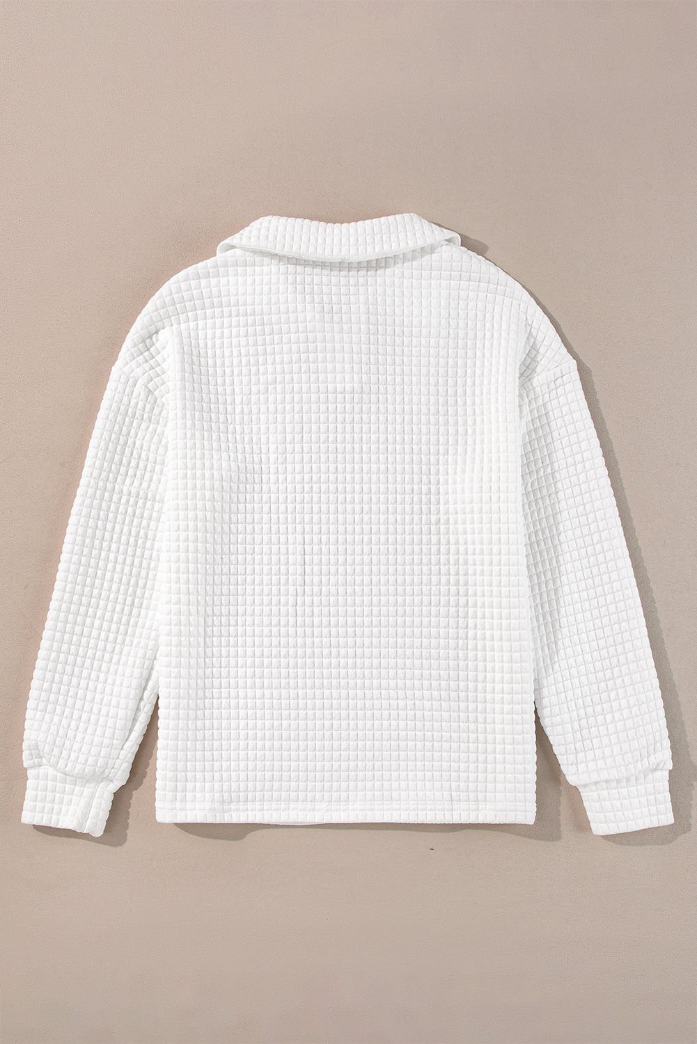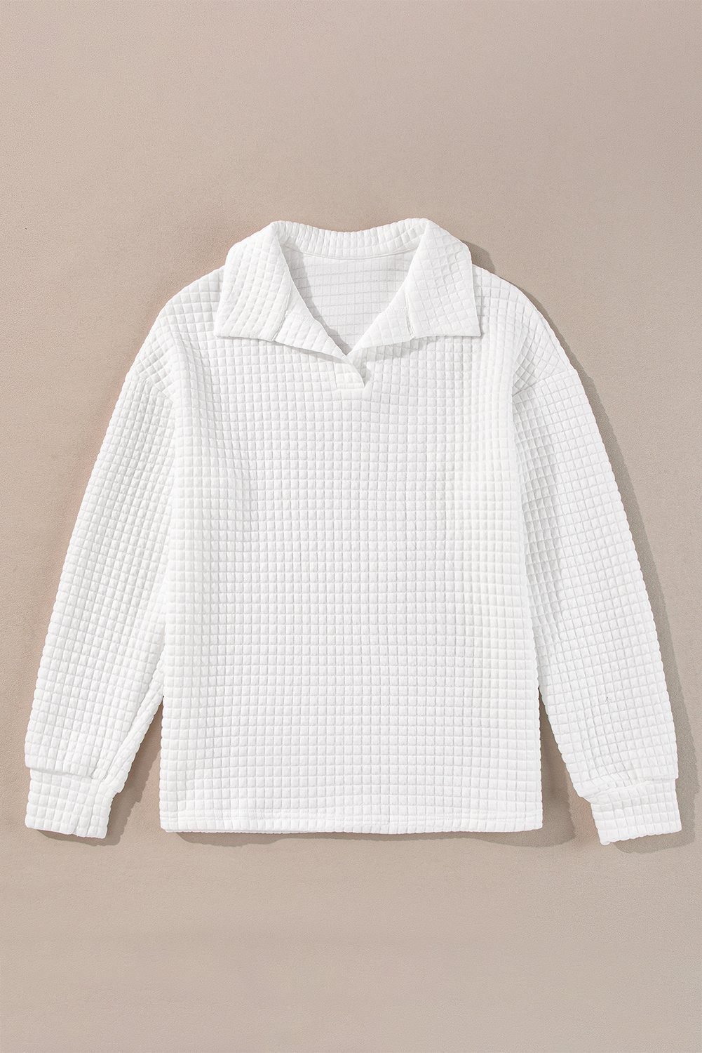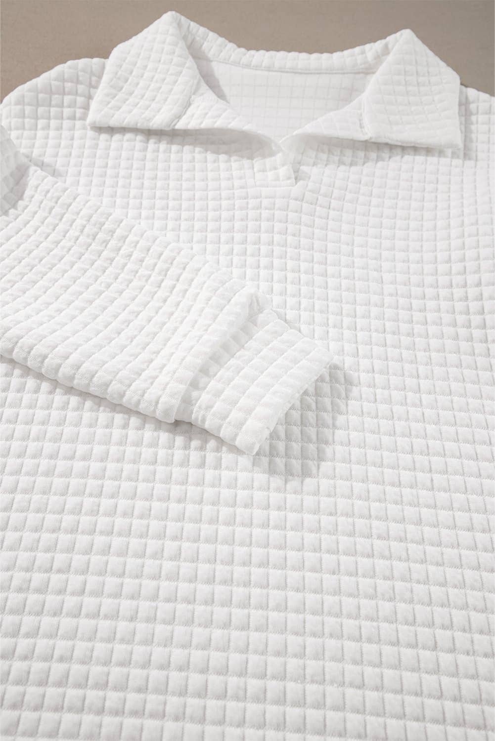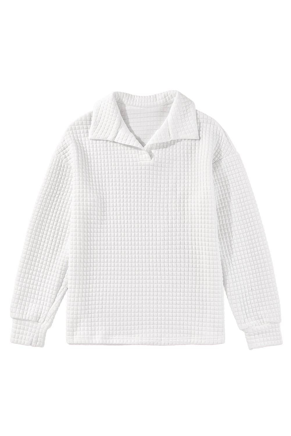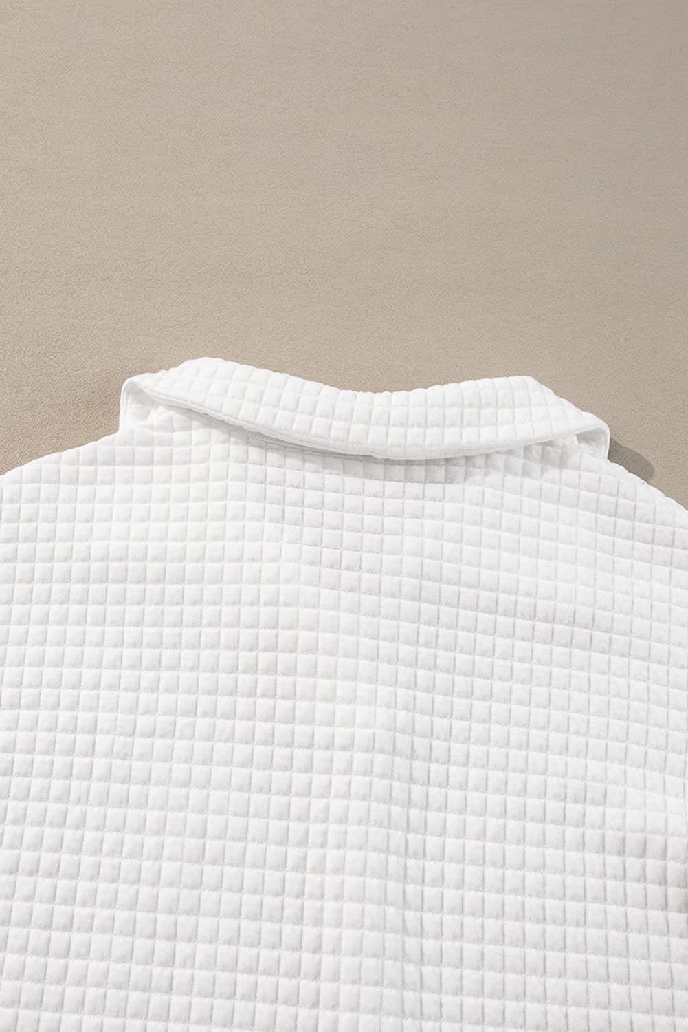 White Quilted Texture Sporty Collared Long Sleeve Top