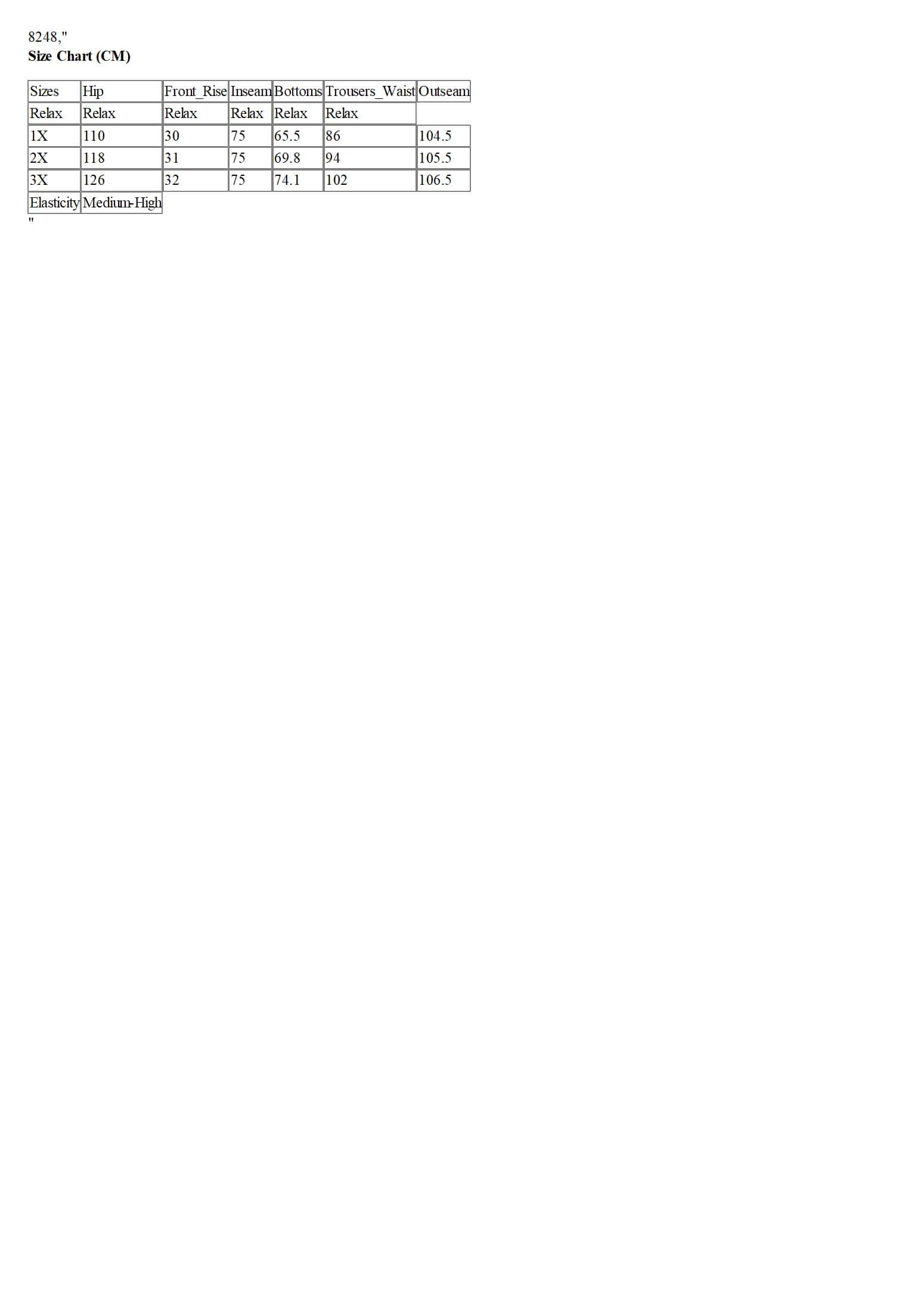 Sizes | Hip | Front_Rise | Inseam | Bottoms | Trousers_Waist | Outseam |