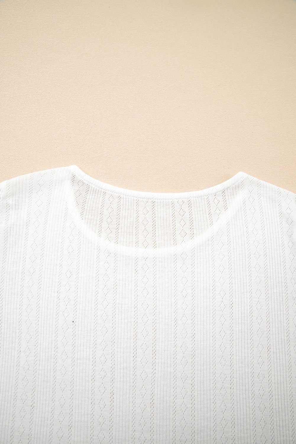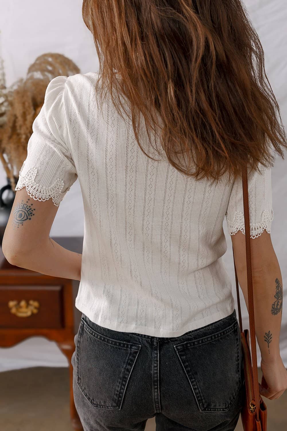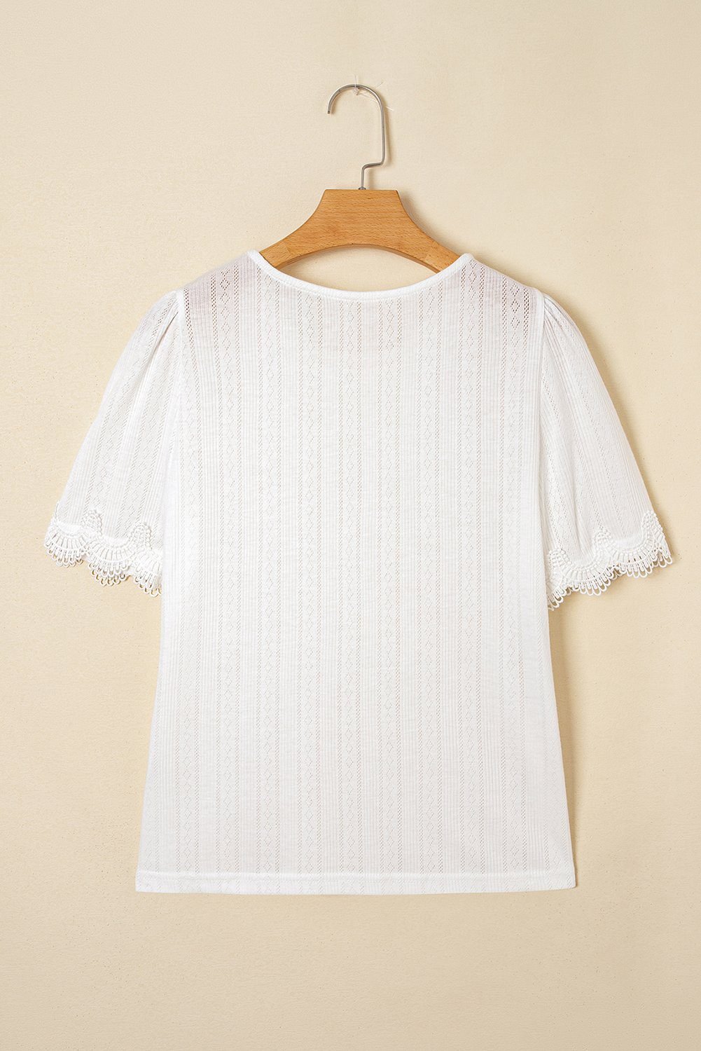White Scalloped Lace Trim Jacquard Textured T Shirt
