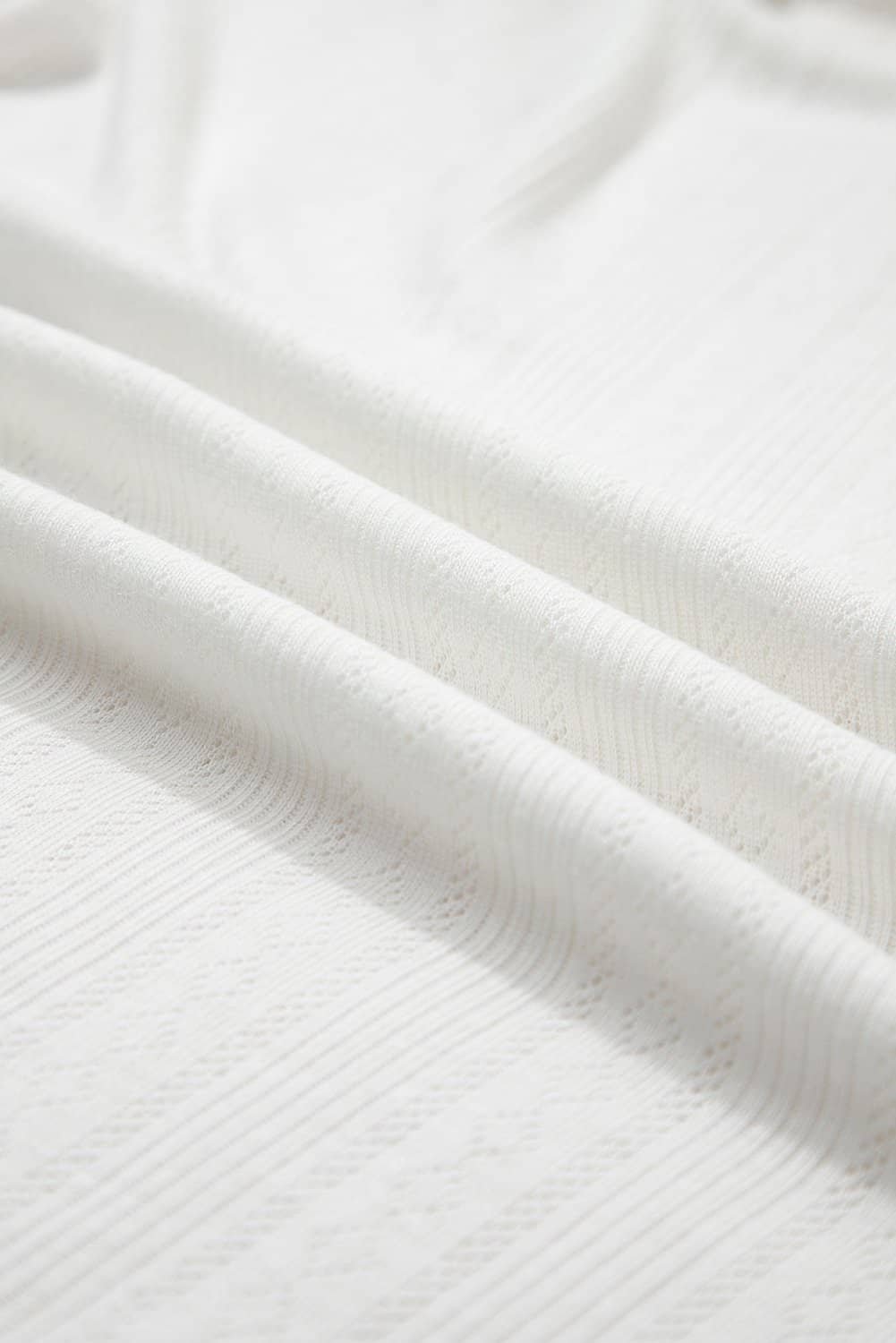 Be the first to review “White Scalloped Lace Trim Jacquard Textured T Shirt”