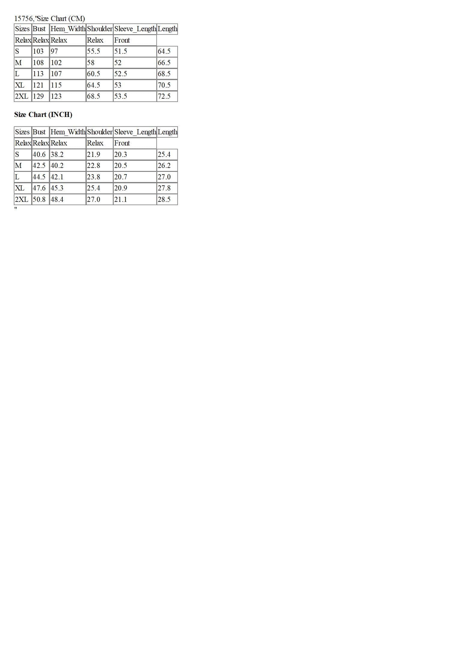 Sizes | Bust | Hem_Width | Shoulder | Sleeve_Length | Length |