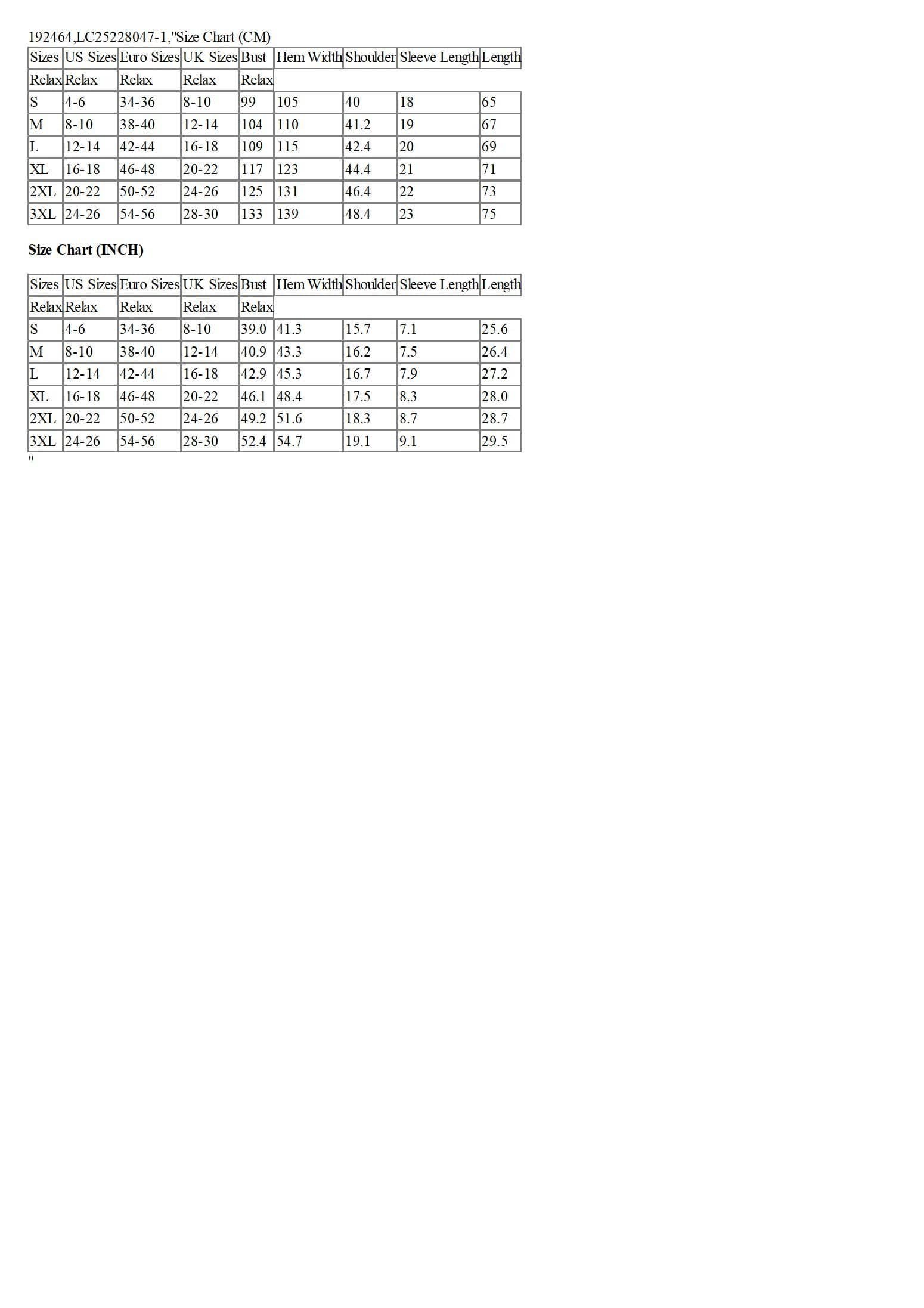 Size Chart (CM)