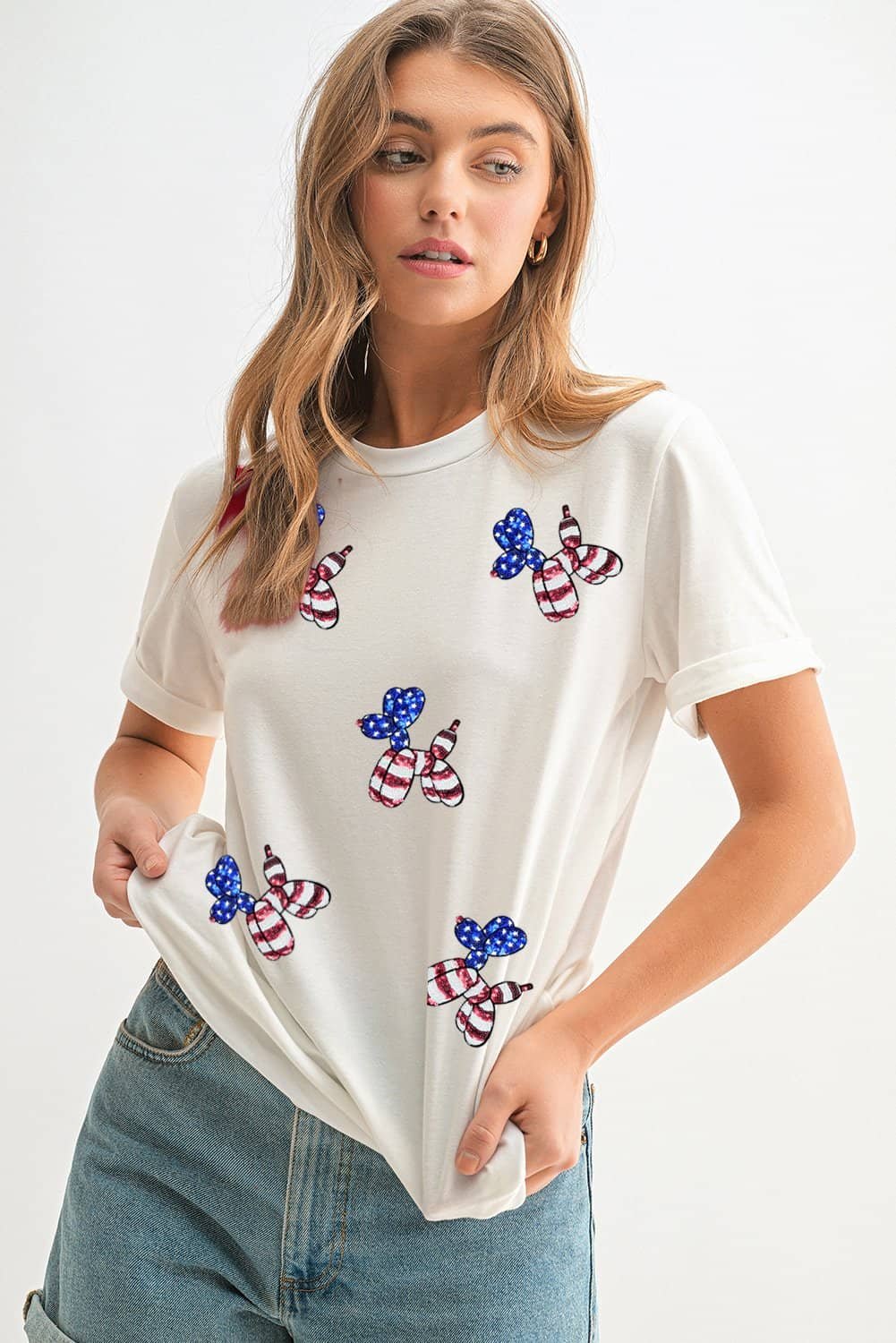 • This patriotic tee features cute sequin balloon puppies with the stars and stripes design.