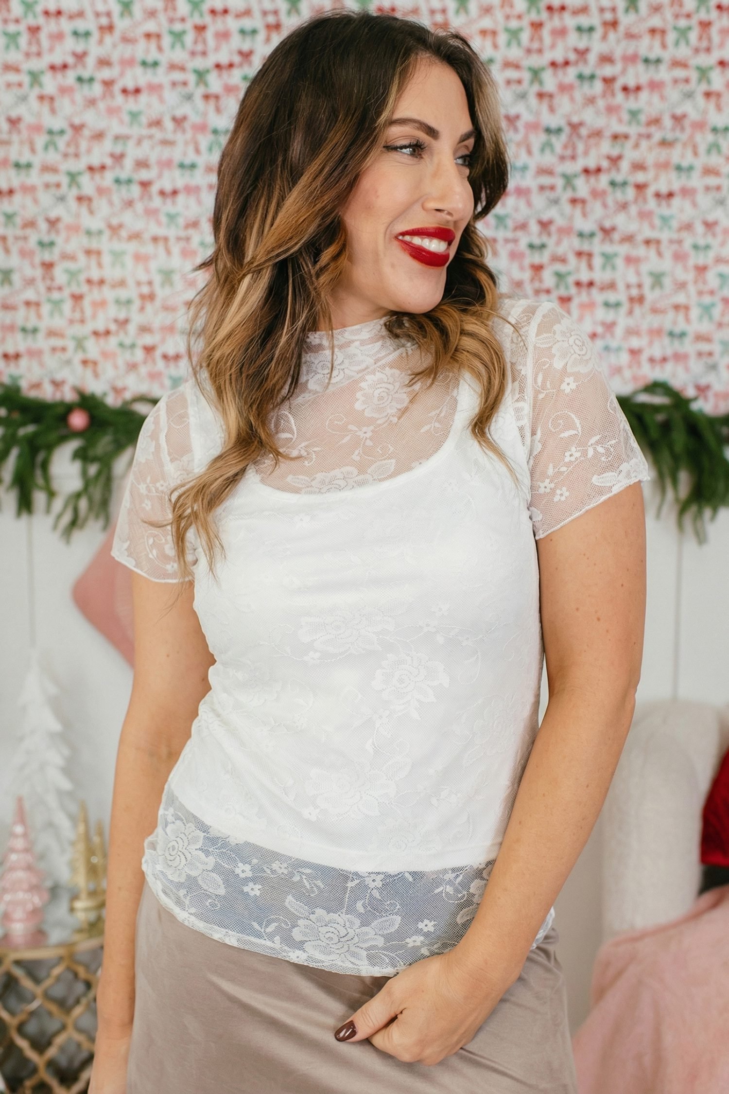 • Elevate your style with the sheer lace top.