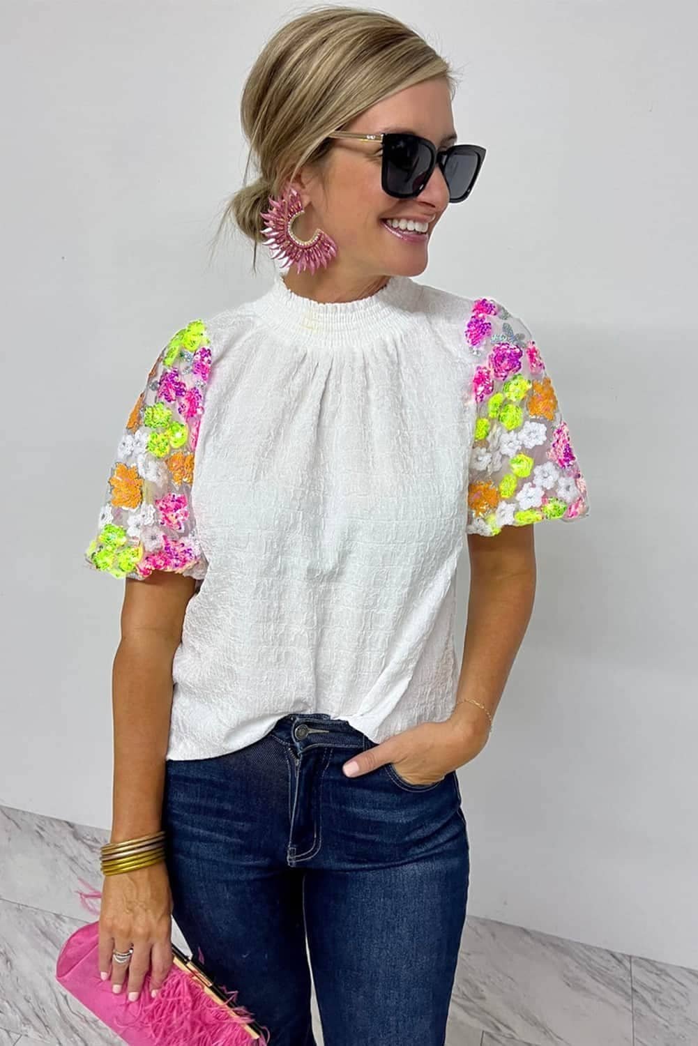 - This sequined top catches the light beautifully, creating a dazzling effect