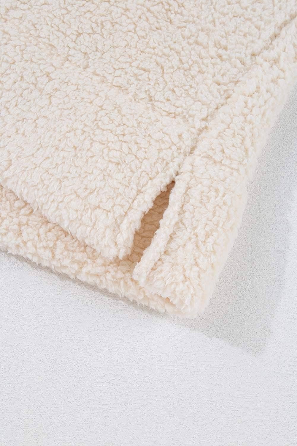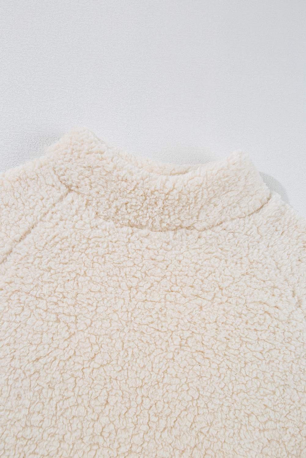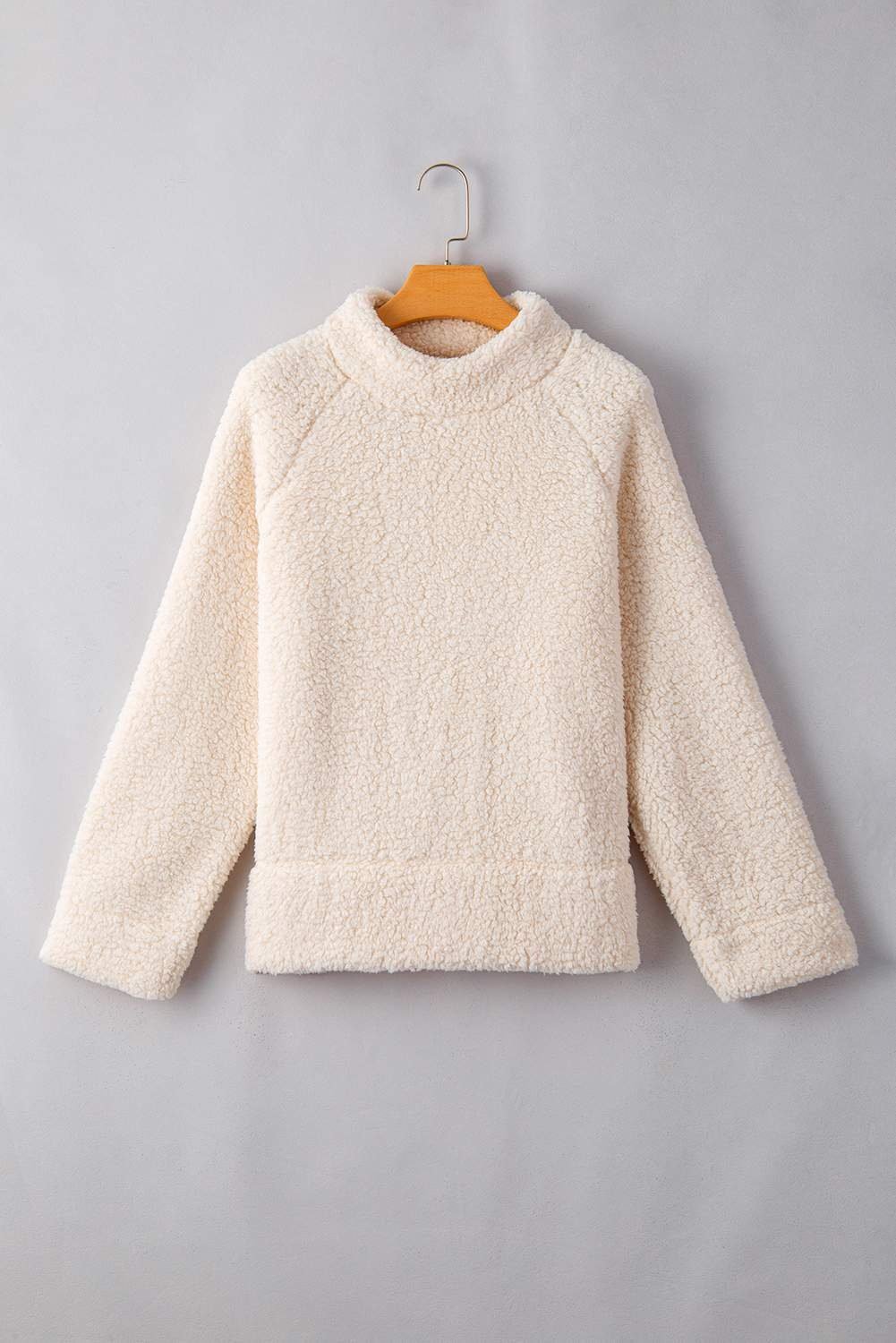 White Solid Fleece High Neck Drop Shoulder Pullover Sweatshirt