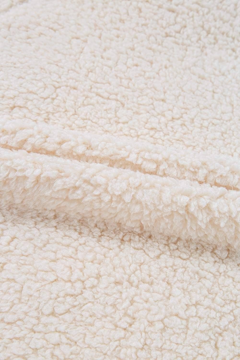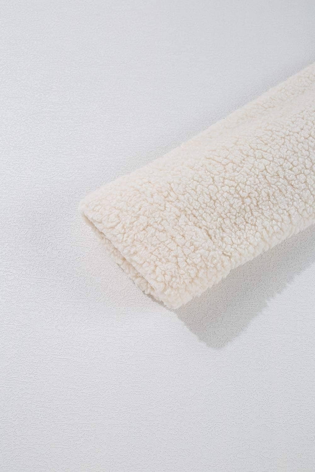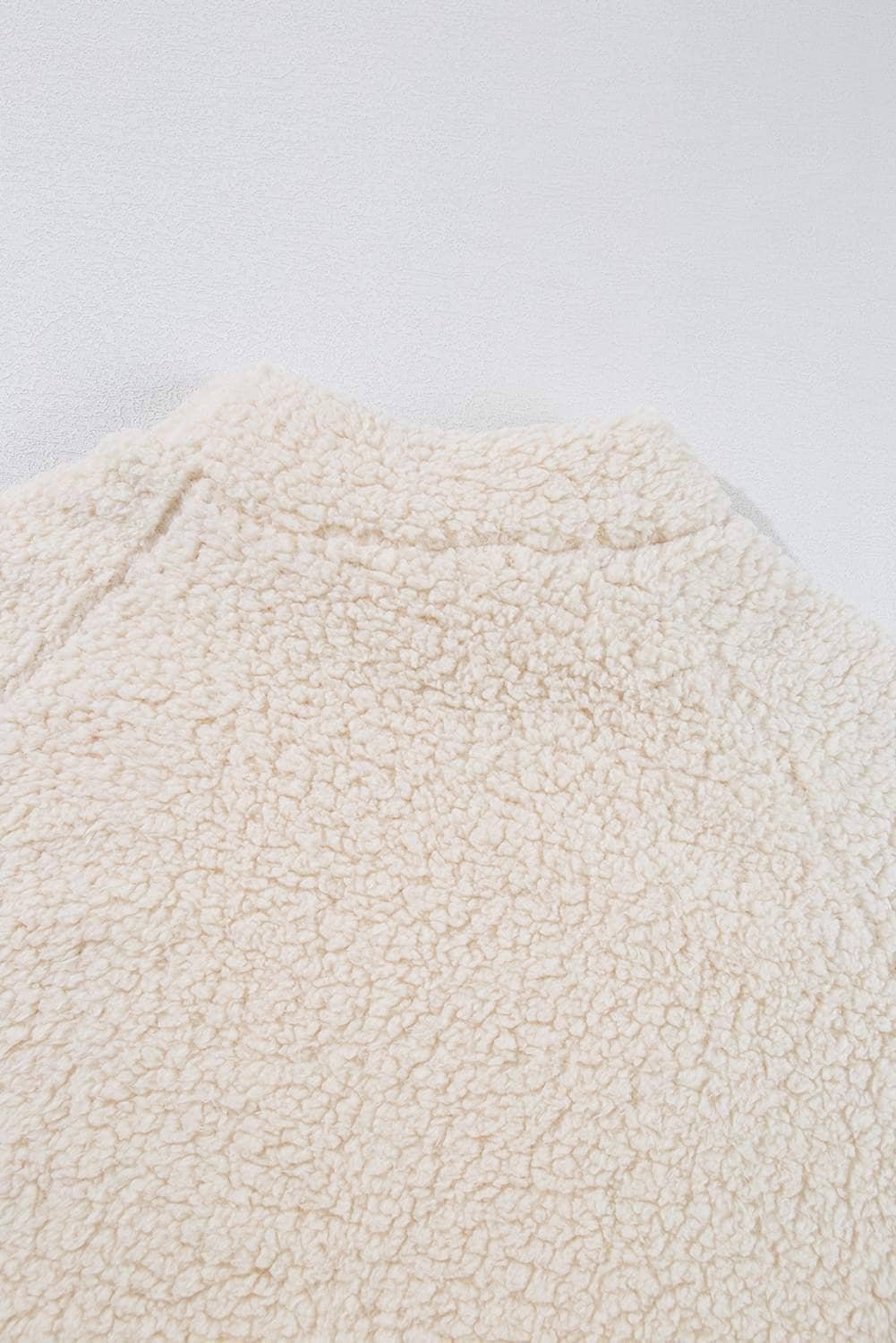 White Solid Fleece High Neck Drop Shoulder Pullover Sweatshirt