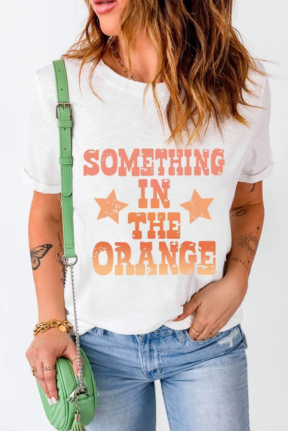 White Something In The Orange Graphic Crew Neck T Shirt