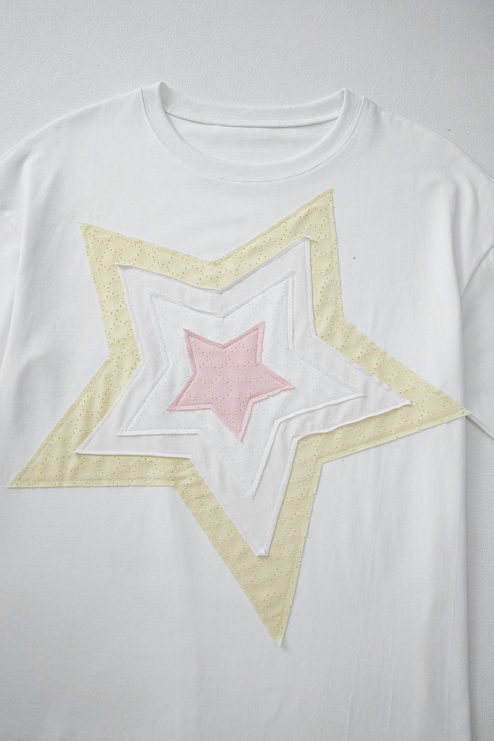 - Unleash your inner star with this trendy layered patch tee.
