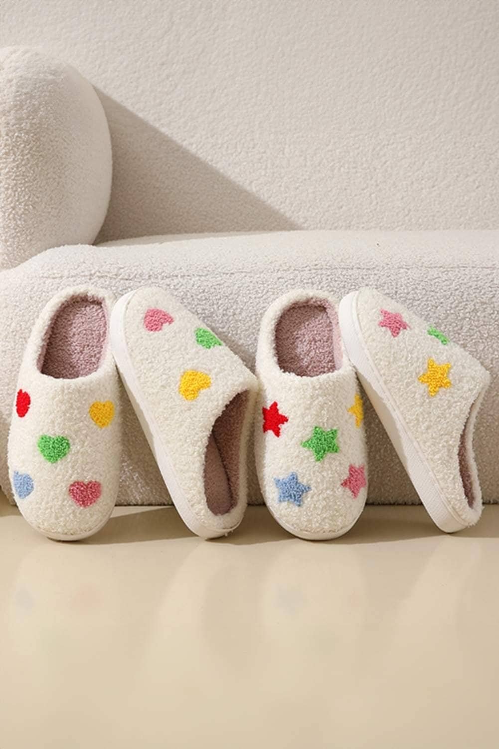 White Star Shape Non-Slip Plush Home Slippers