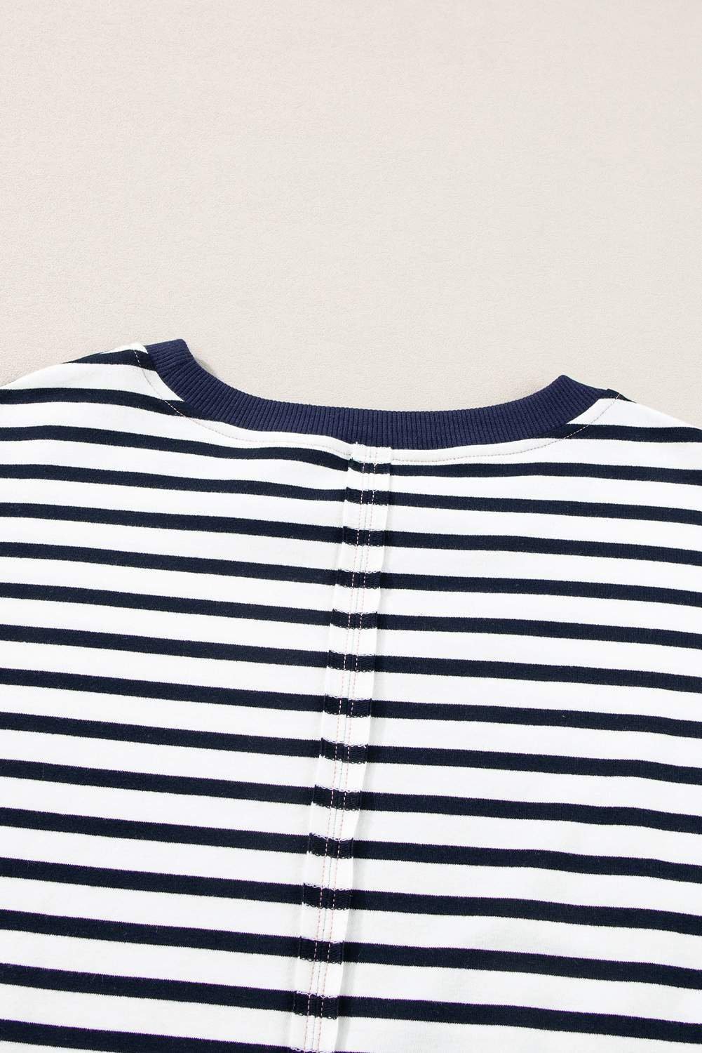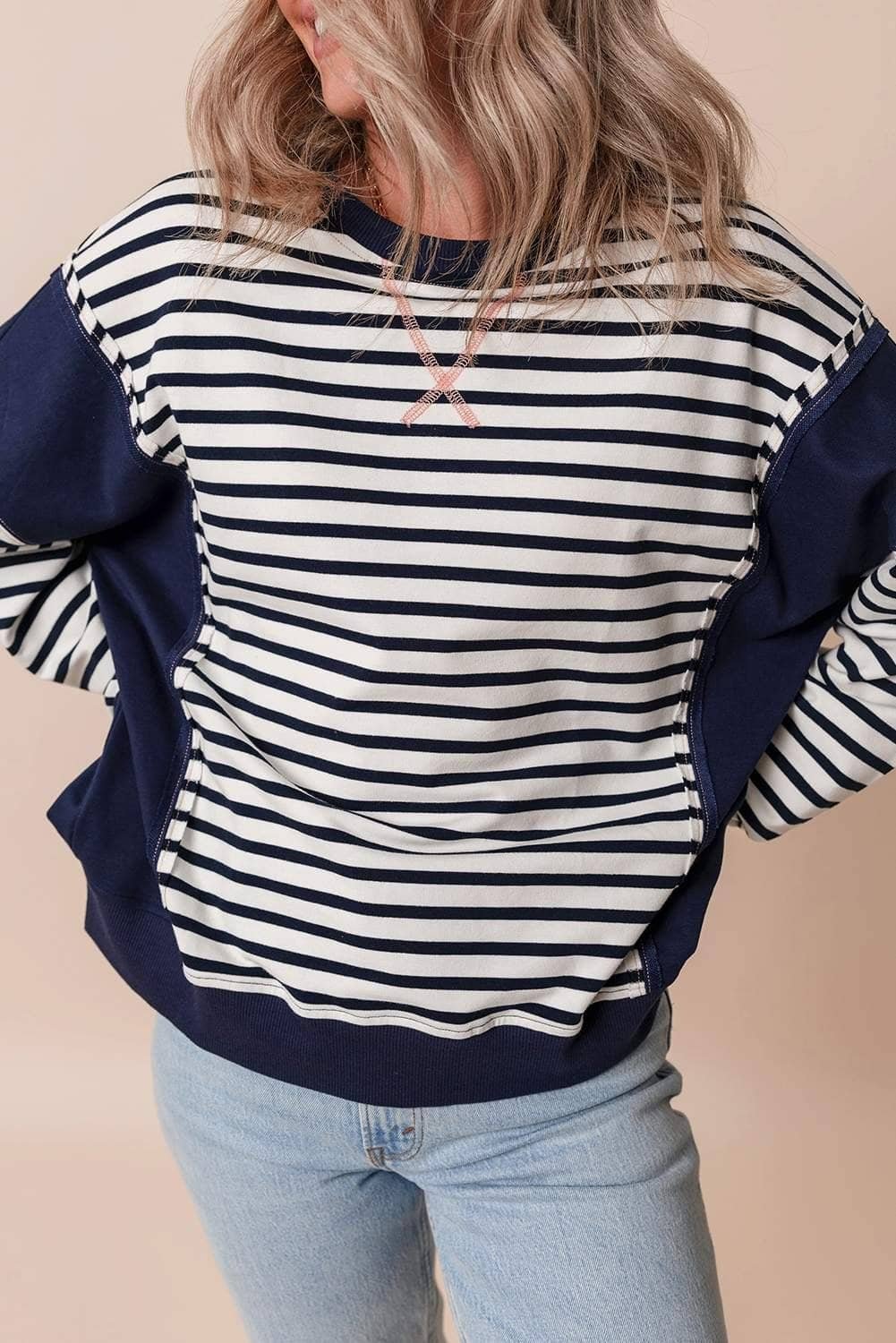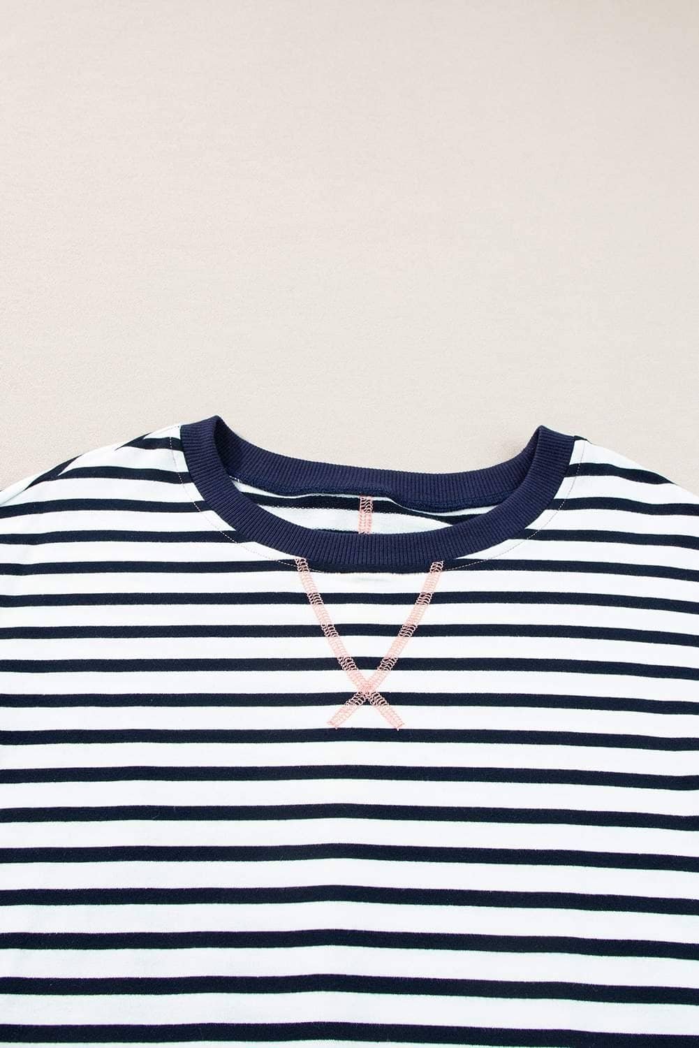 - Striped pattern gives this round neck sweatshirt a classic look.