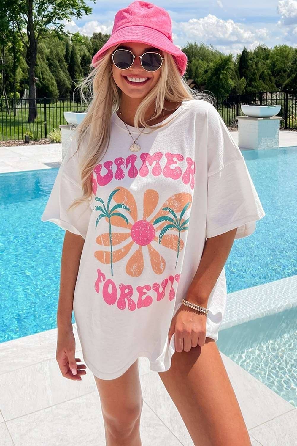 - The graphic T-Shirt captures the essence of eternal summer with its vibrant floral prints.