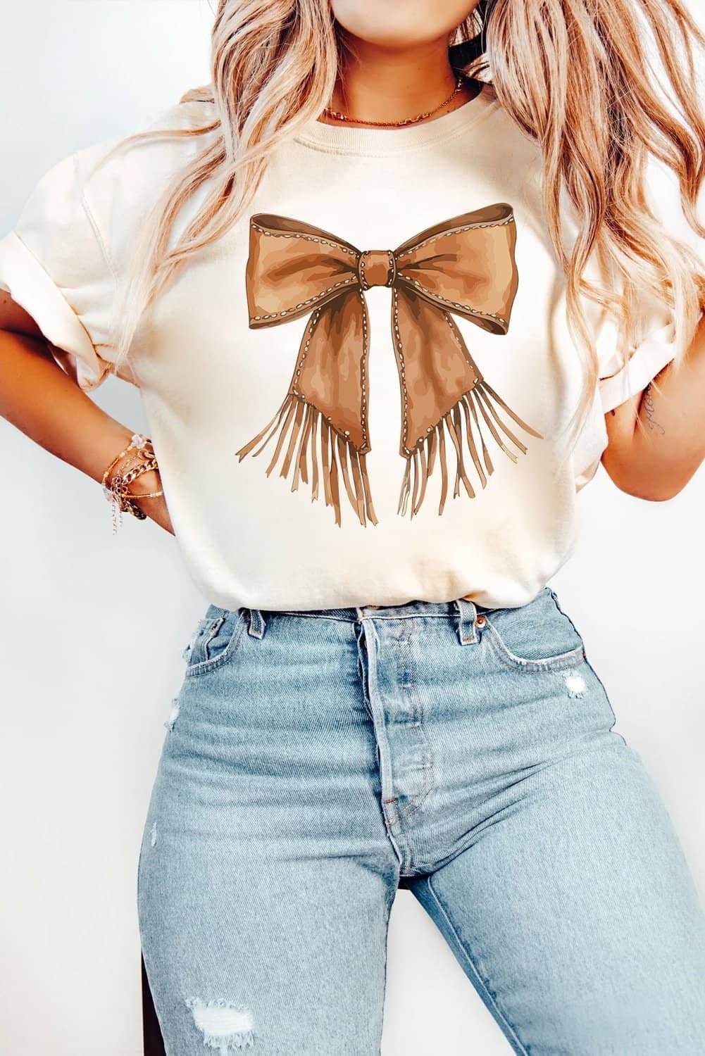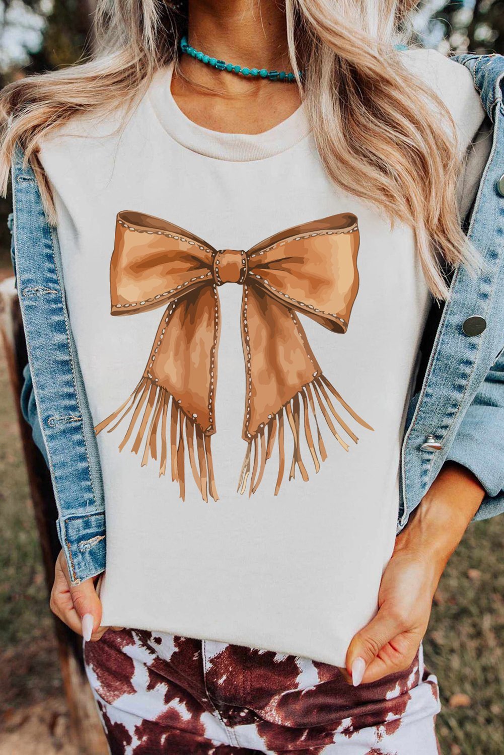 The unique tasseled bowknot print adds a touch of Western charm to your outfit.