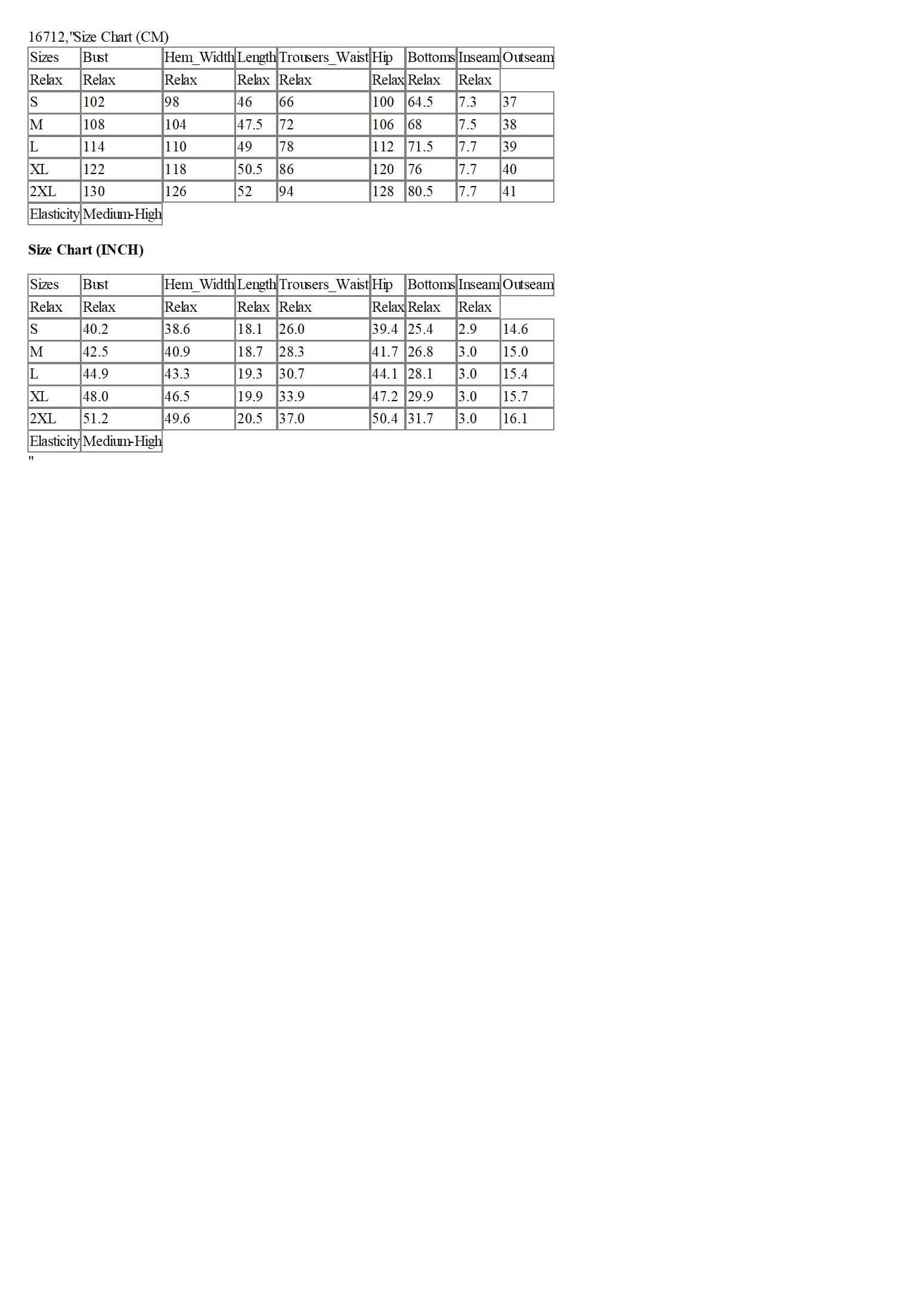 Size Chart (CM)