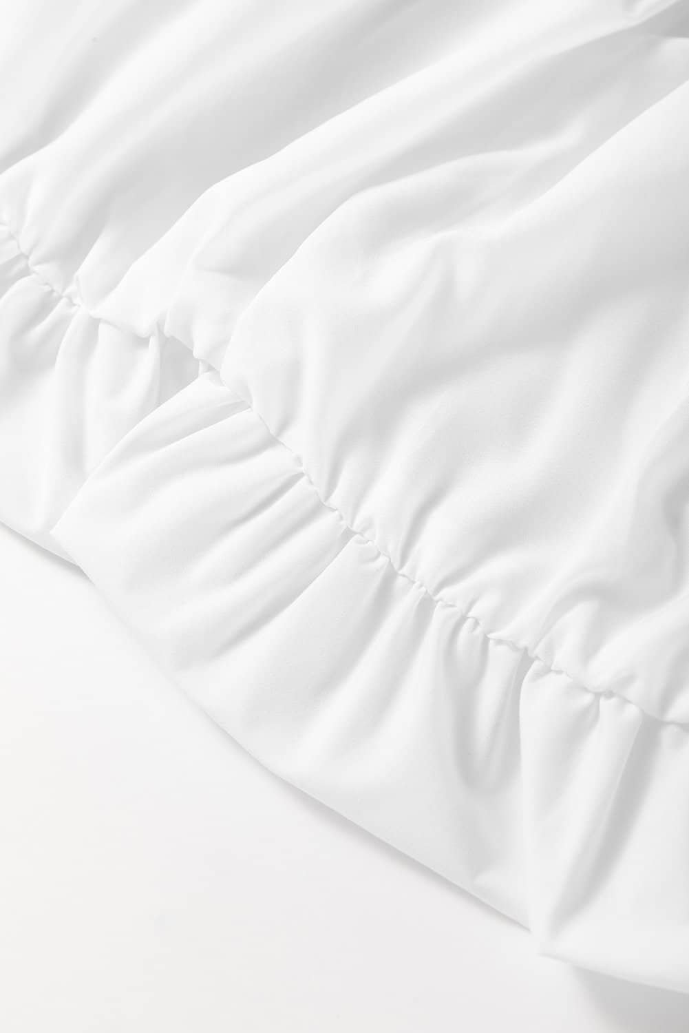 White U Neck Long Sleeve Bubble Hem Top