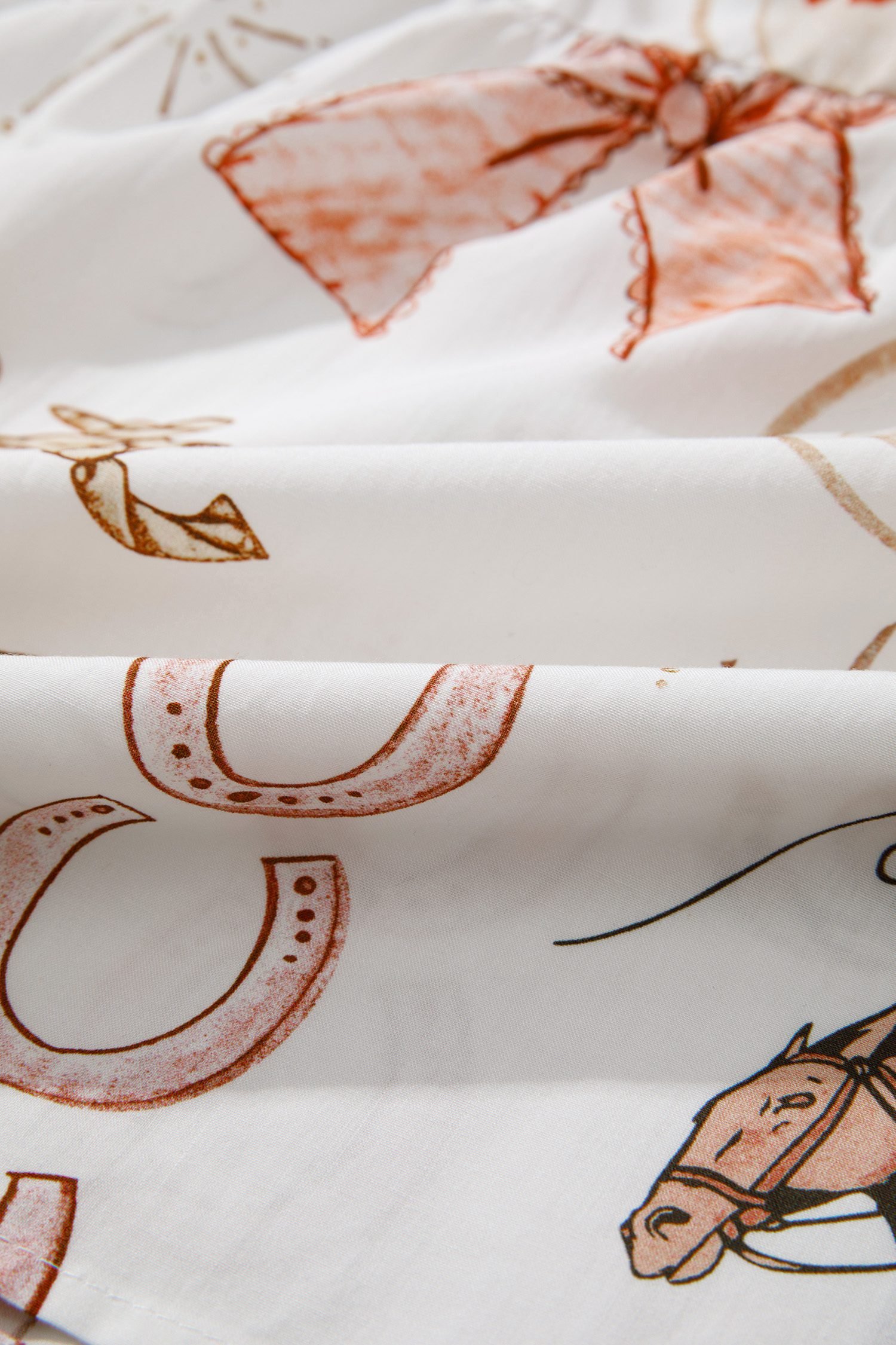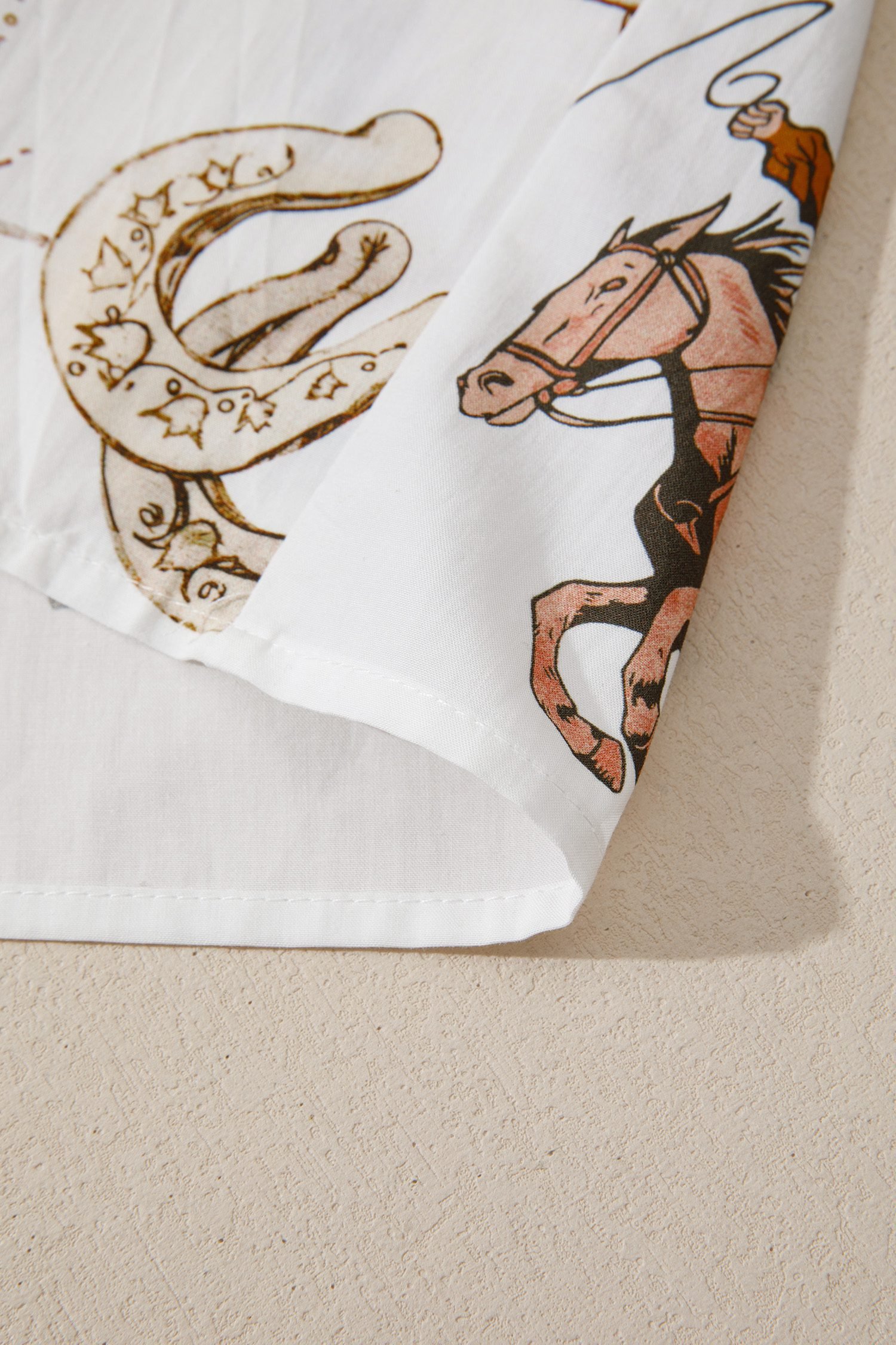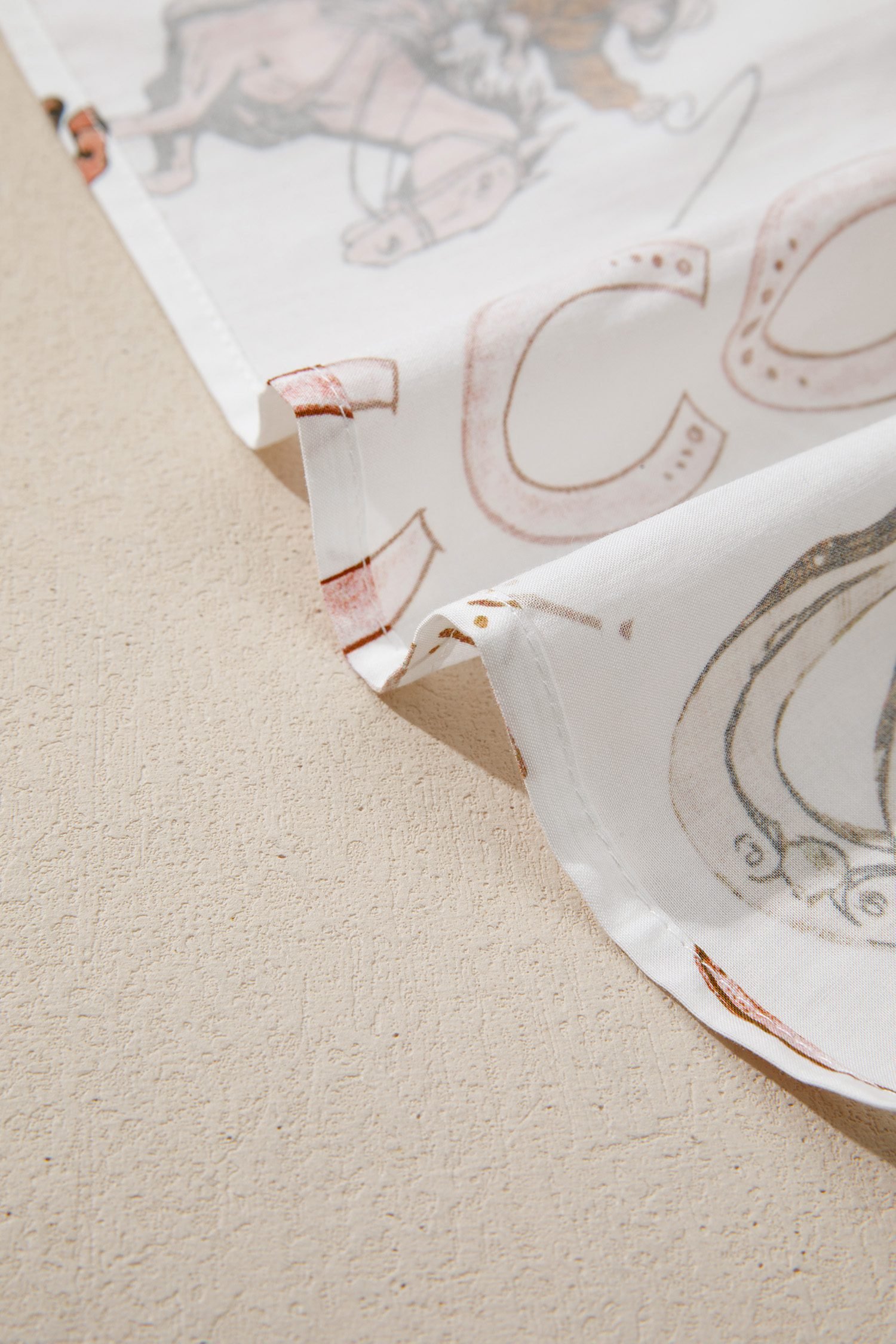 Features a trendy Western horseshoe print with a classic U-neckline.