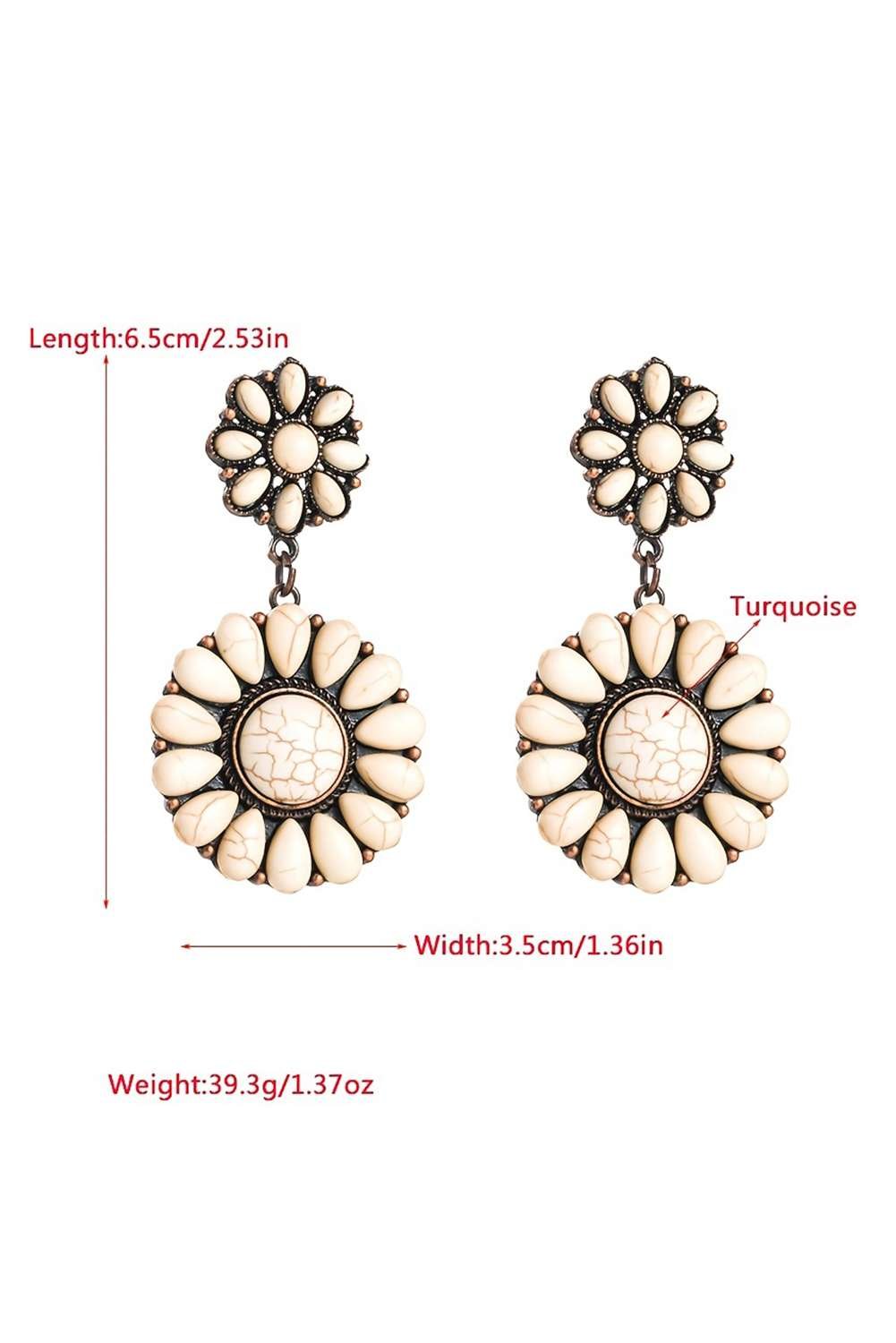 White Western Turquoise Inlay Flower Shape Stud Earrings