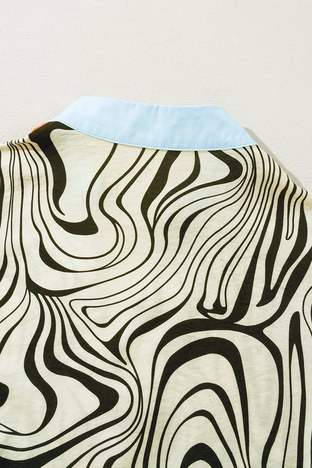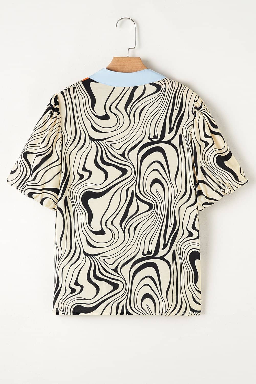 Be the first to review “White Zebra Stripe Print Contrast V-Neck Ricrac Detail Short Sleeve Blouse Top”