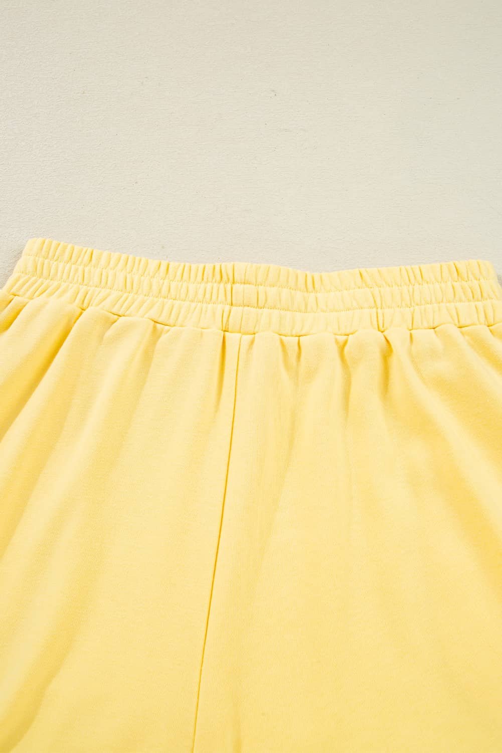 Yellow Color Block Patchwork Half Button Pullover And Shorts 2Pcs Outfit