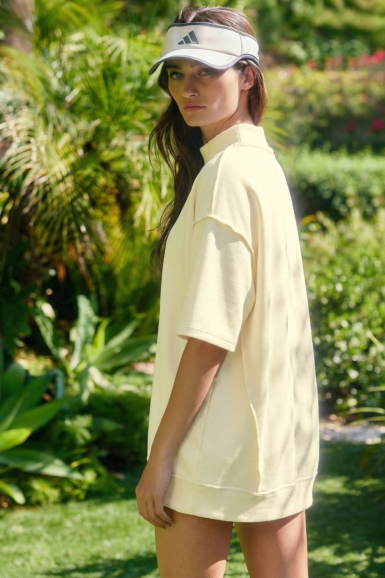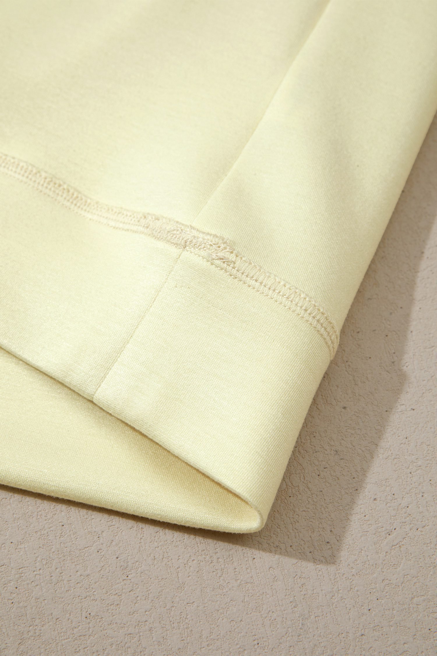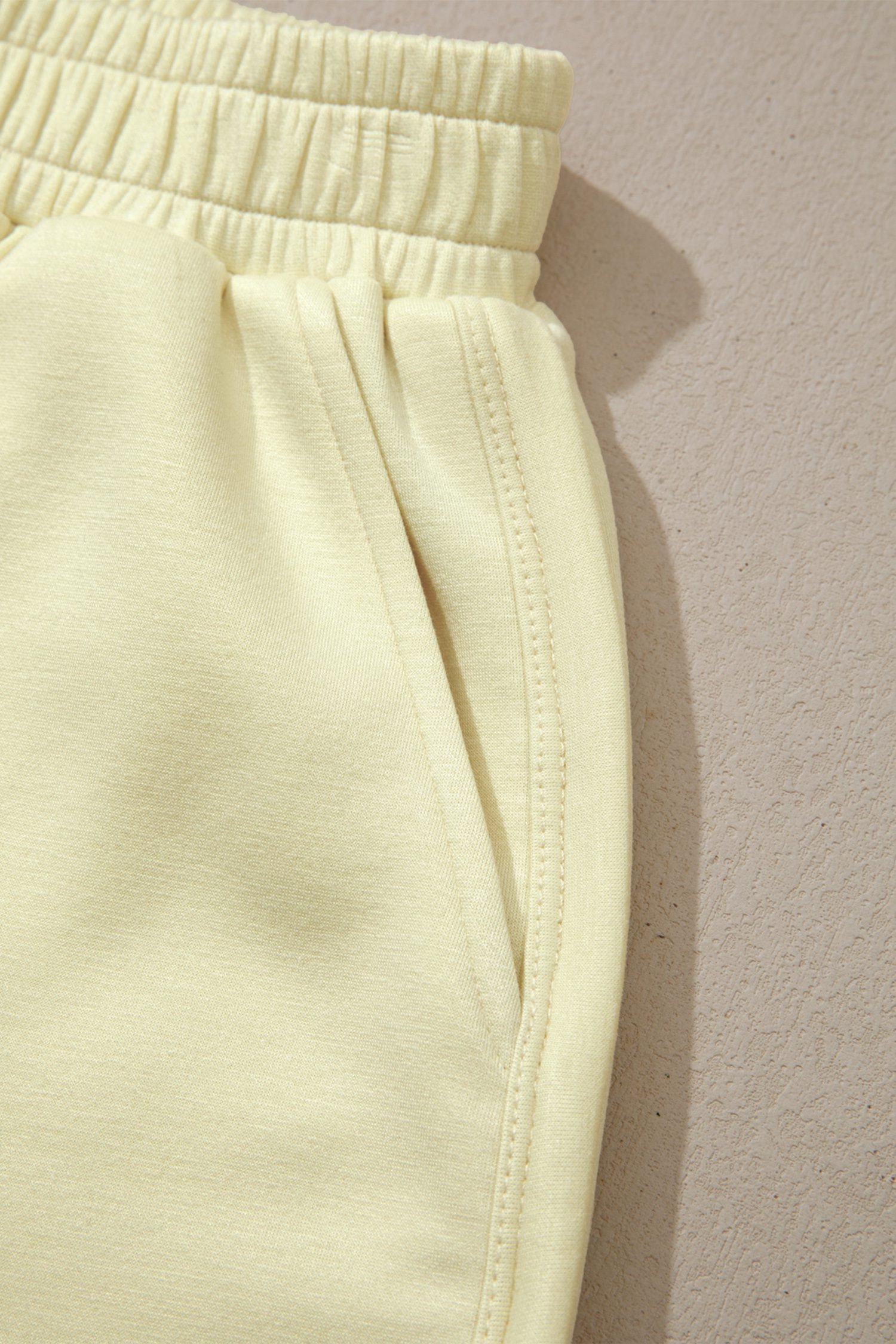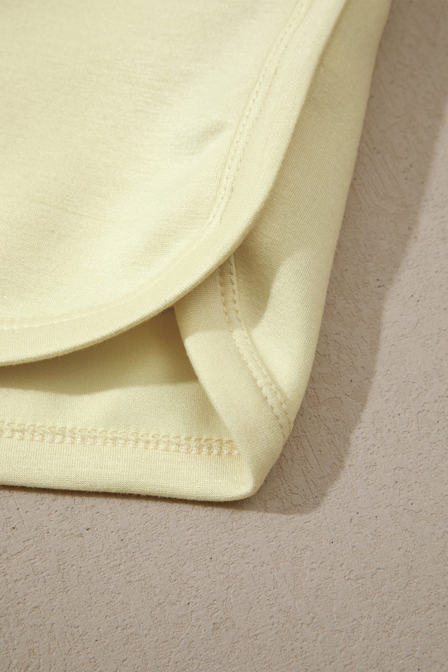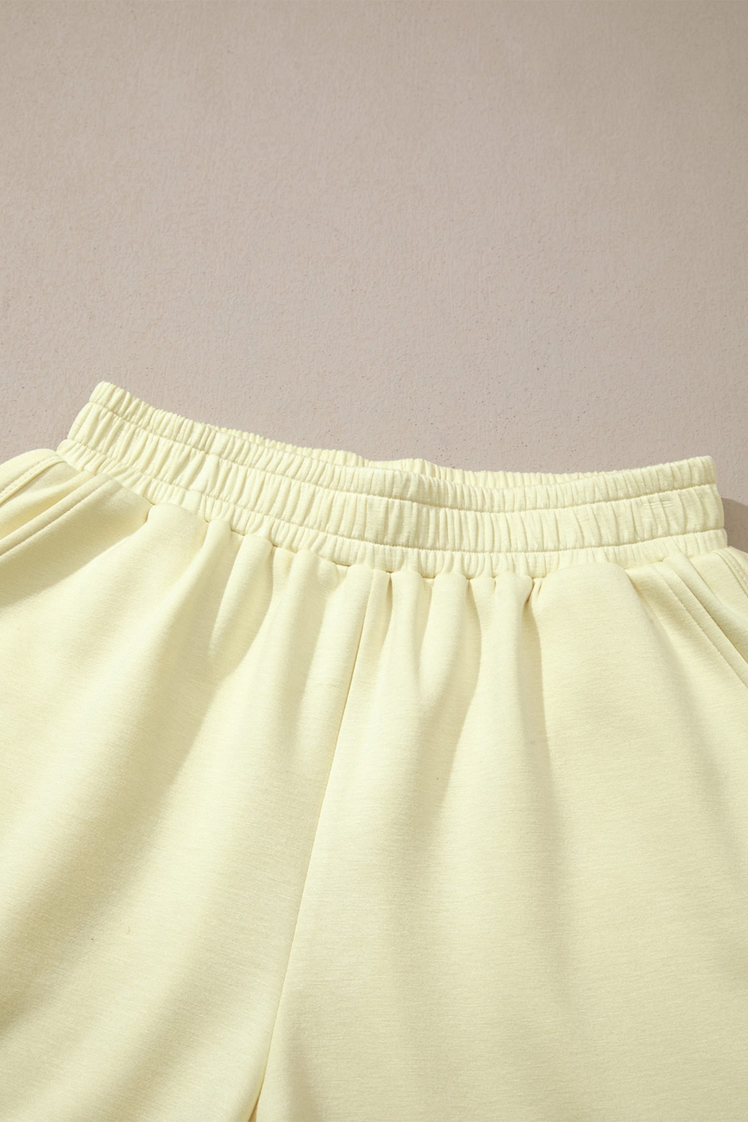 Yellow Cream Solid Color Exposed Seam Mock Neck Oversize Tee Casual Shorts 2pcs Outfit