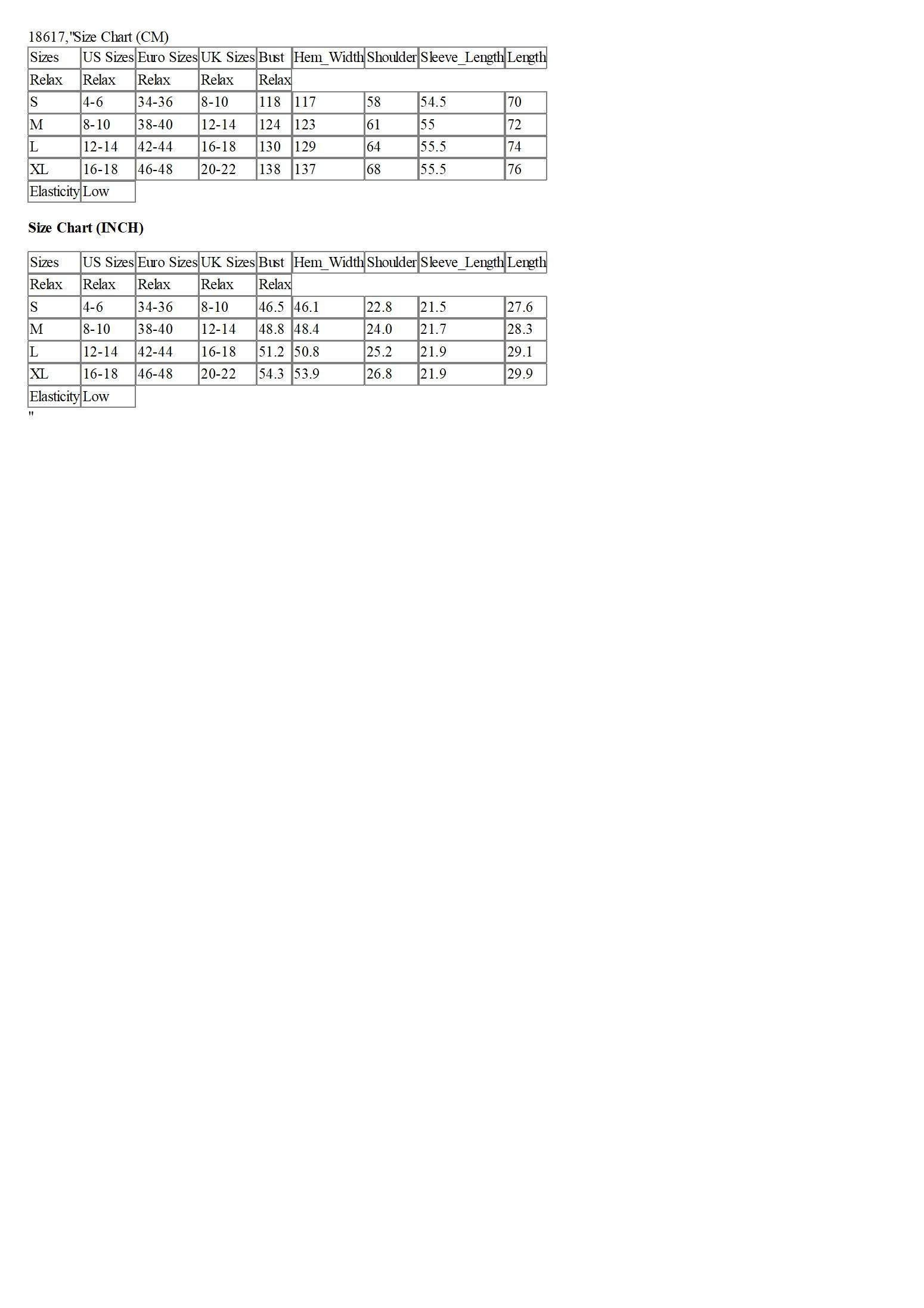 Size Chart (CM)