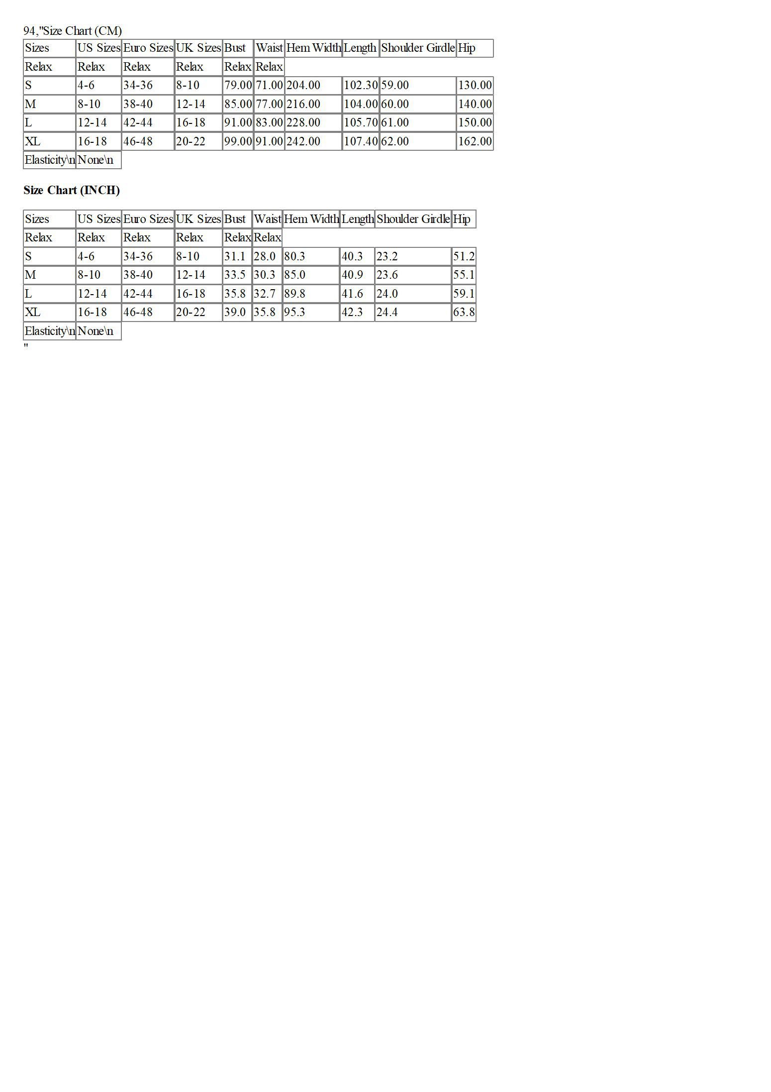 Sizes | US Sizes | Euro Sizes | UK Sizes | Bust | Waist | Hem Width | Length | Shoulder Girdle | Hip |