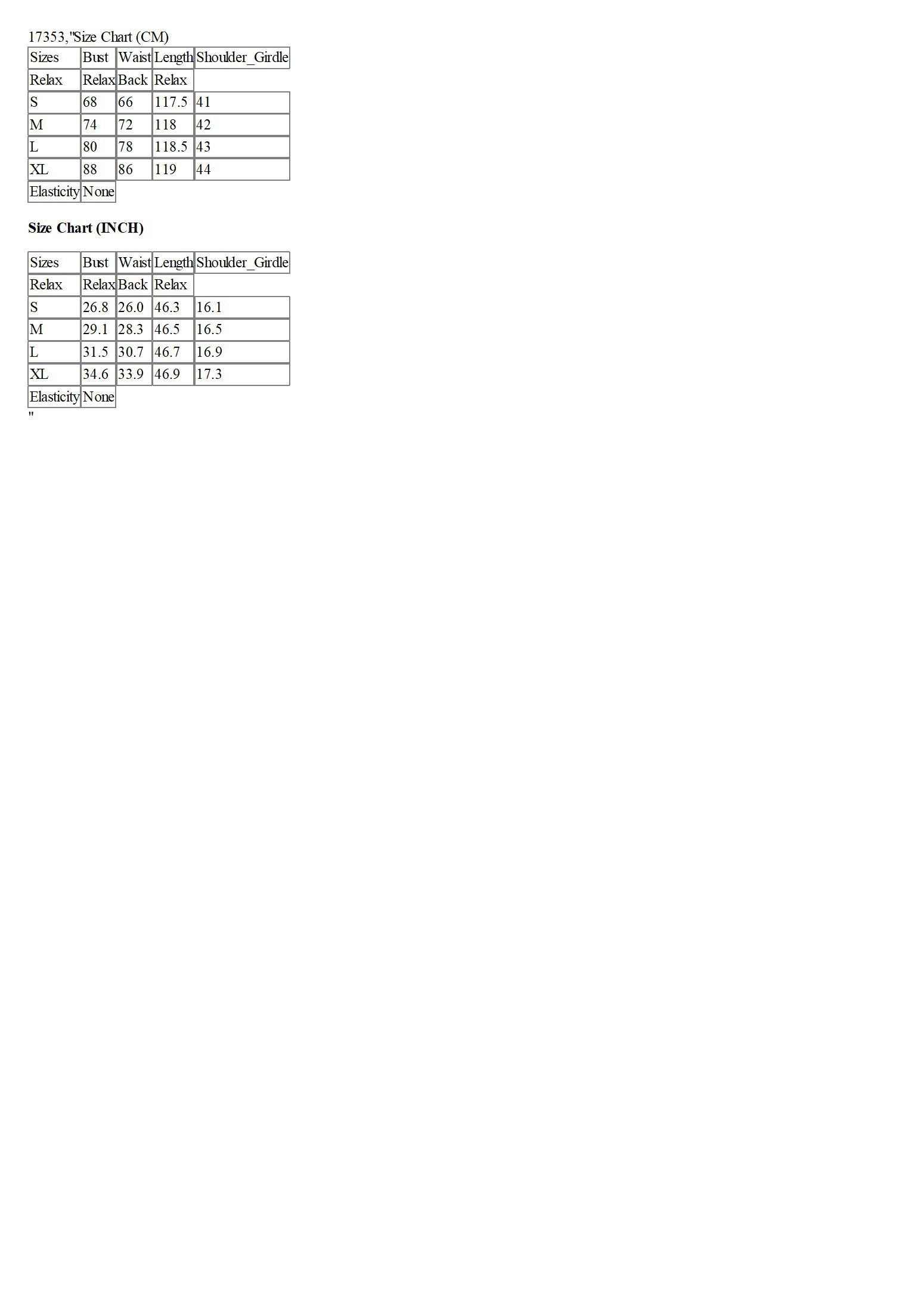 Size Chart (CM)