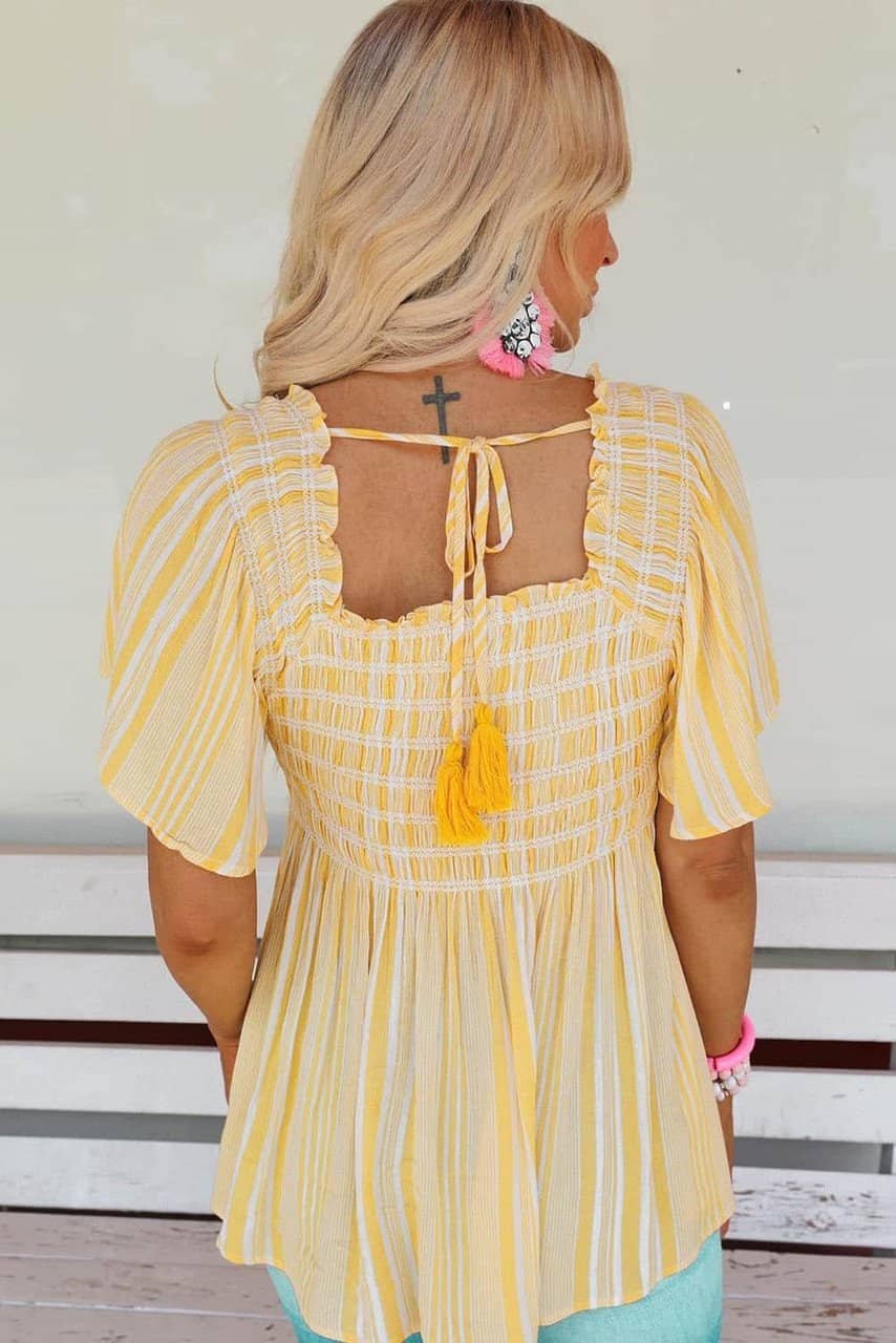 - Striped print makes the blouse very classic and chic