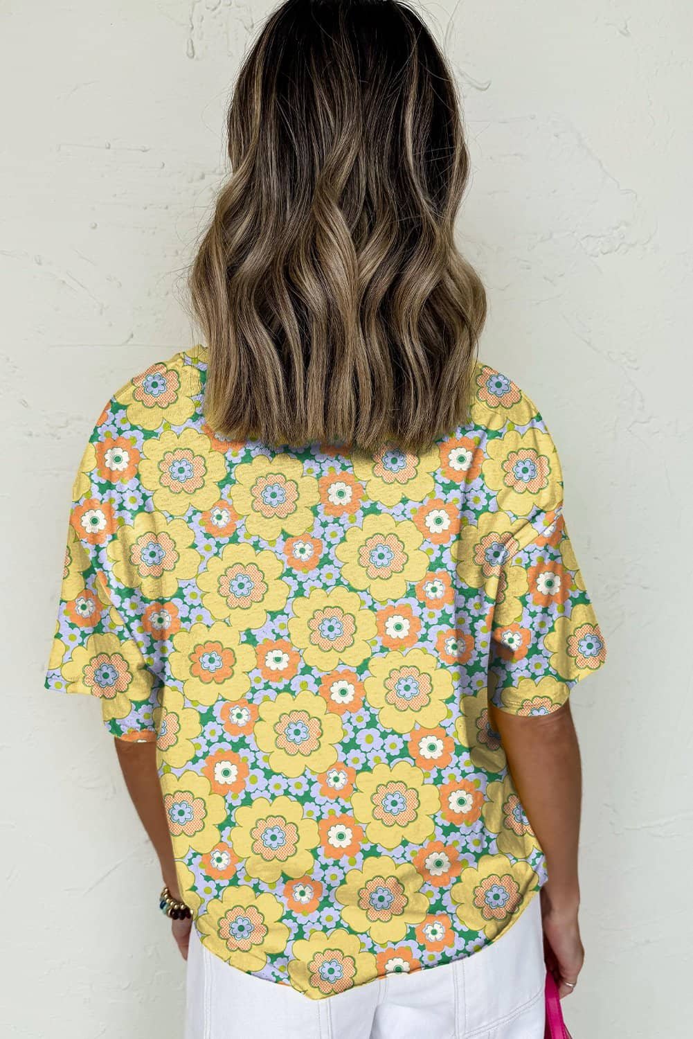 - This flower tee is vibrant and chic for summer season.